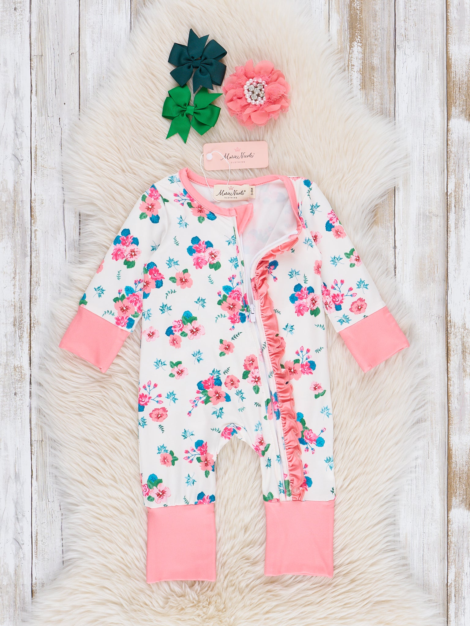 Coral Sweet Garden Ruffle Sleeper Pajamas
