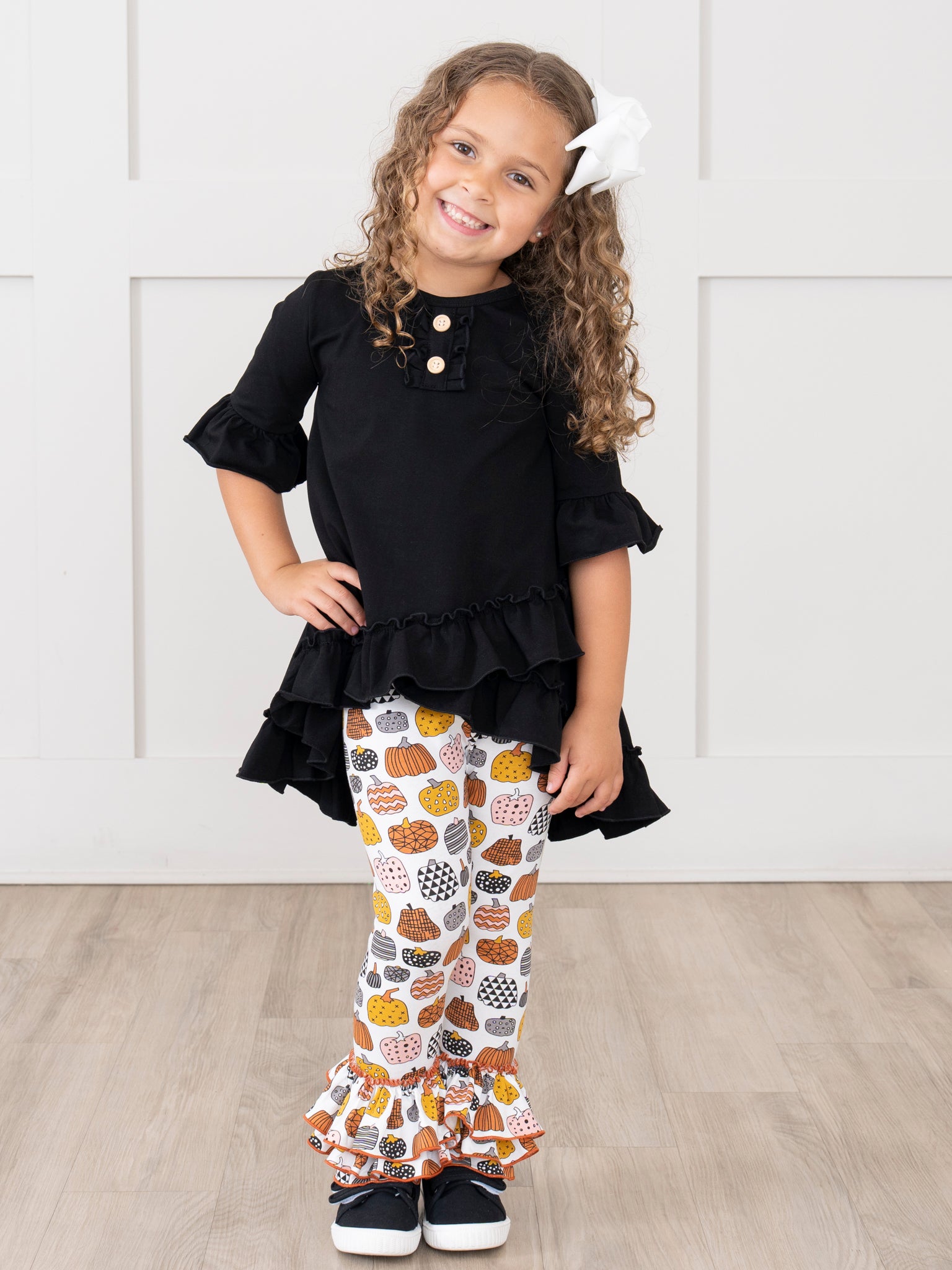 Cotton Ruffle Hi-Low Tunic Top - Black