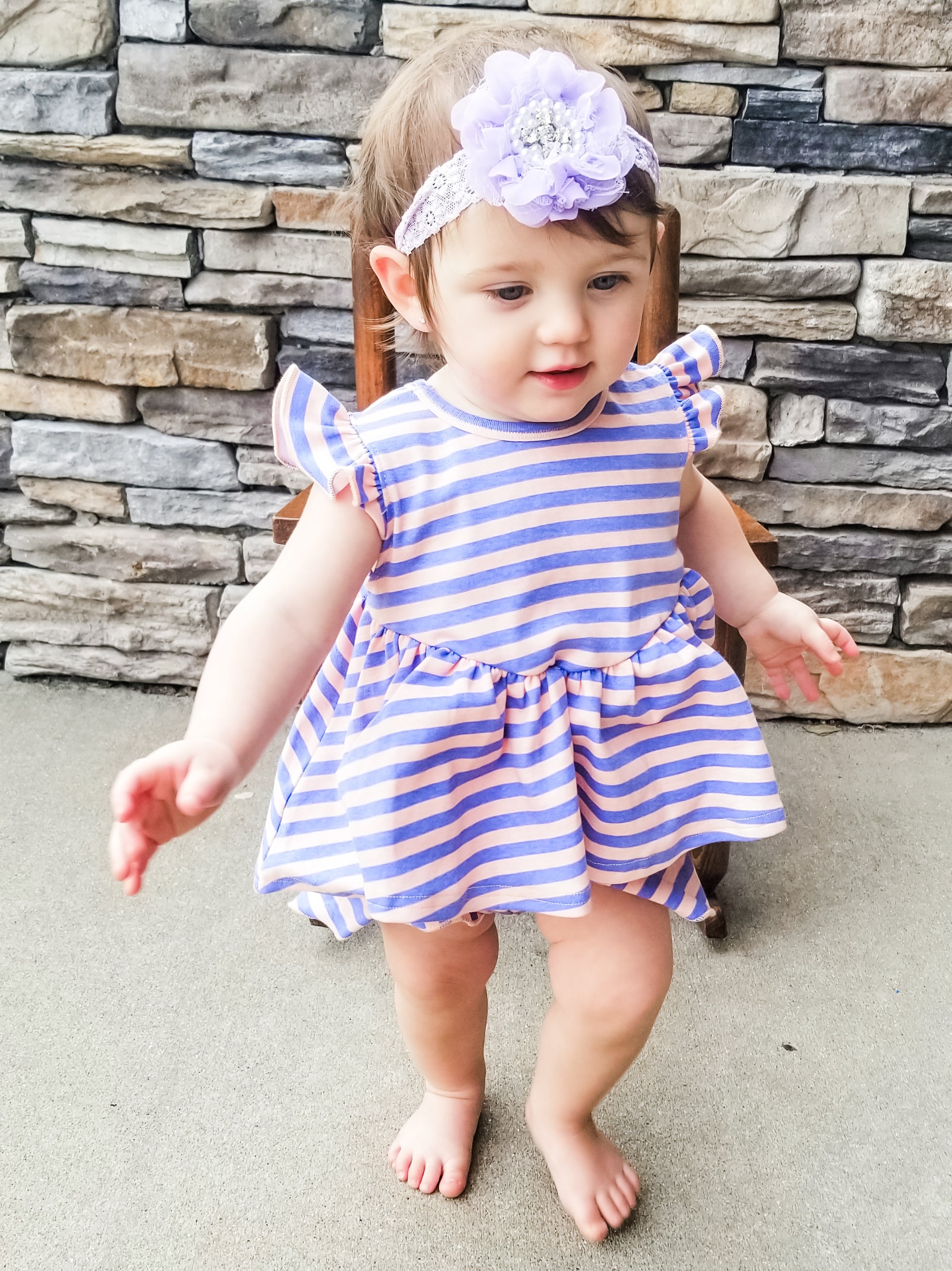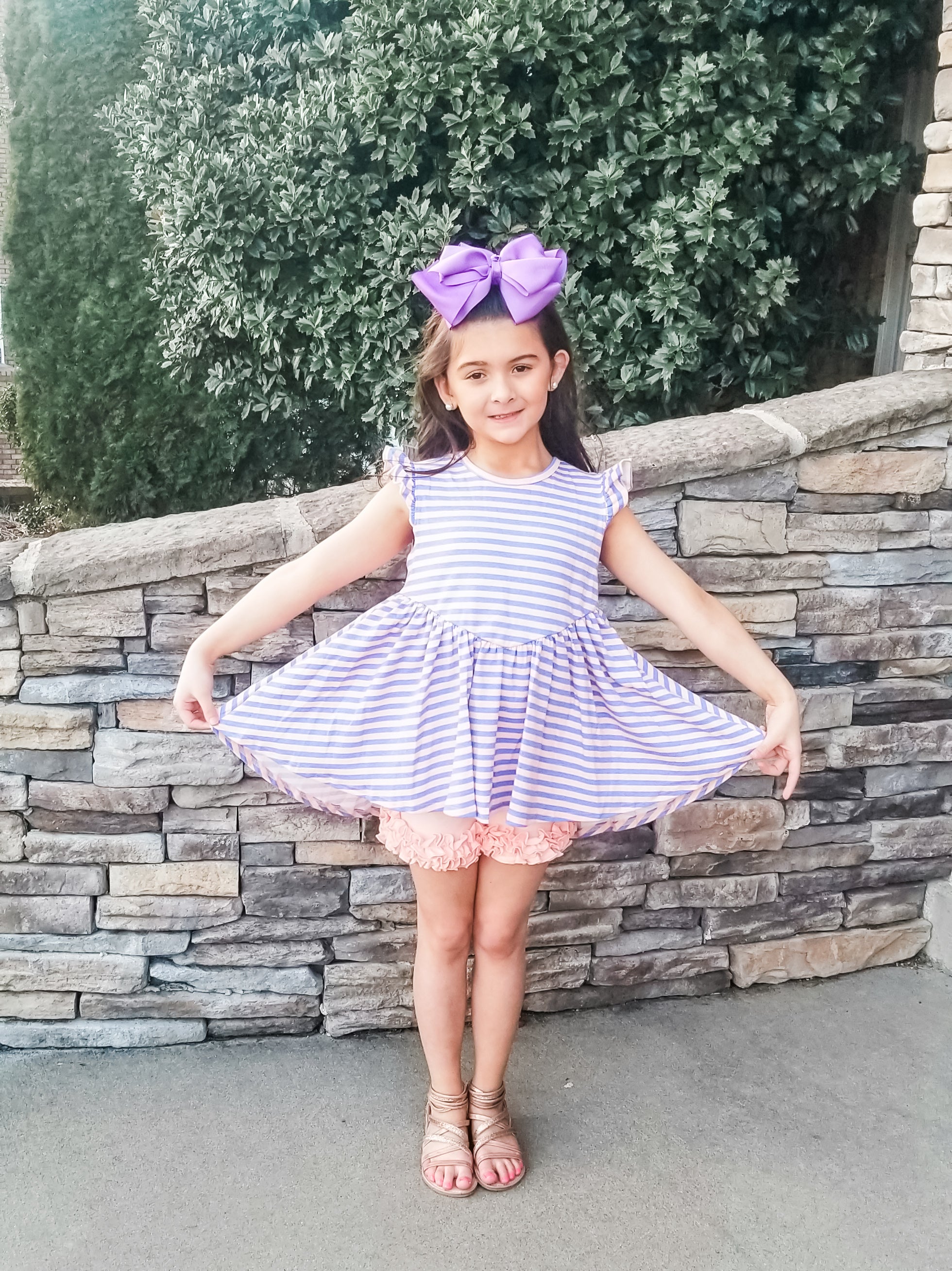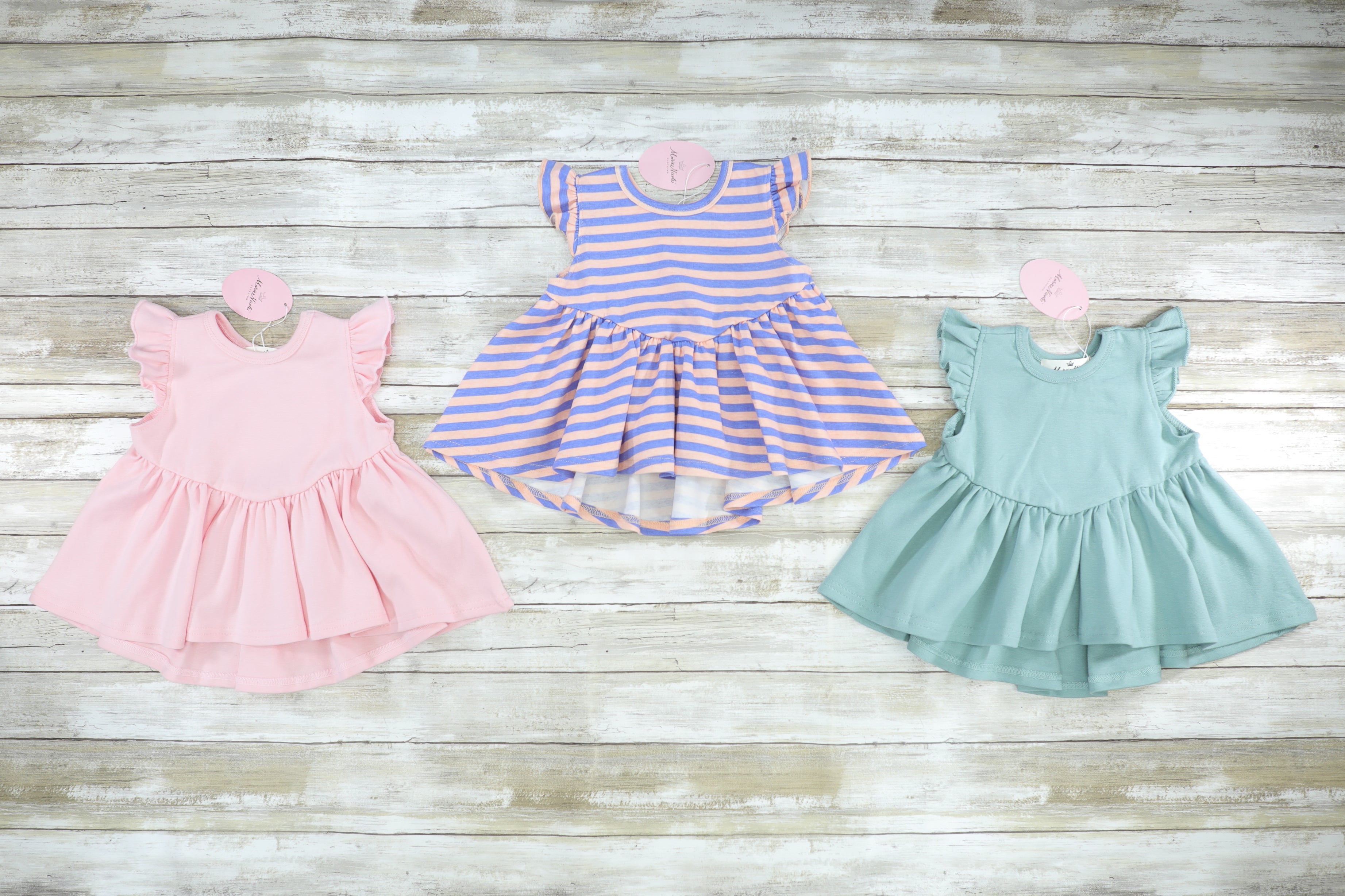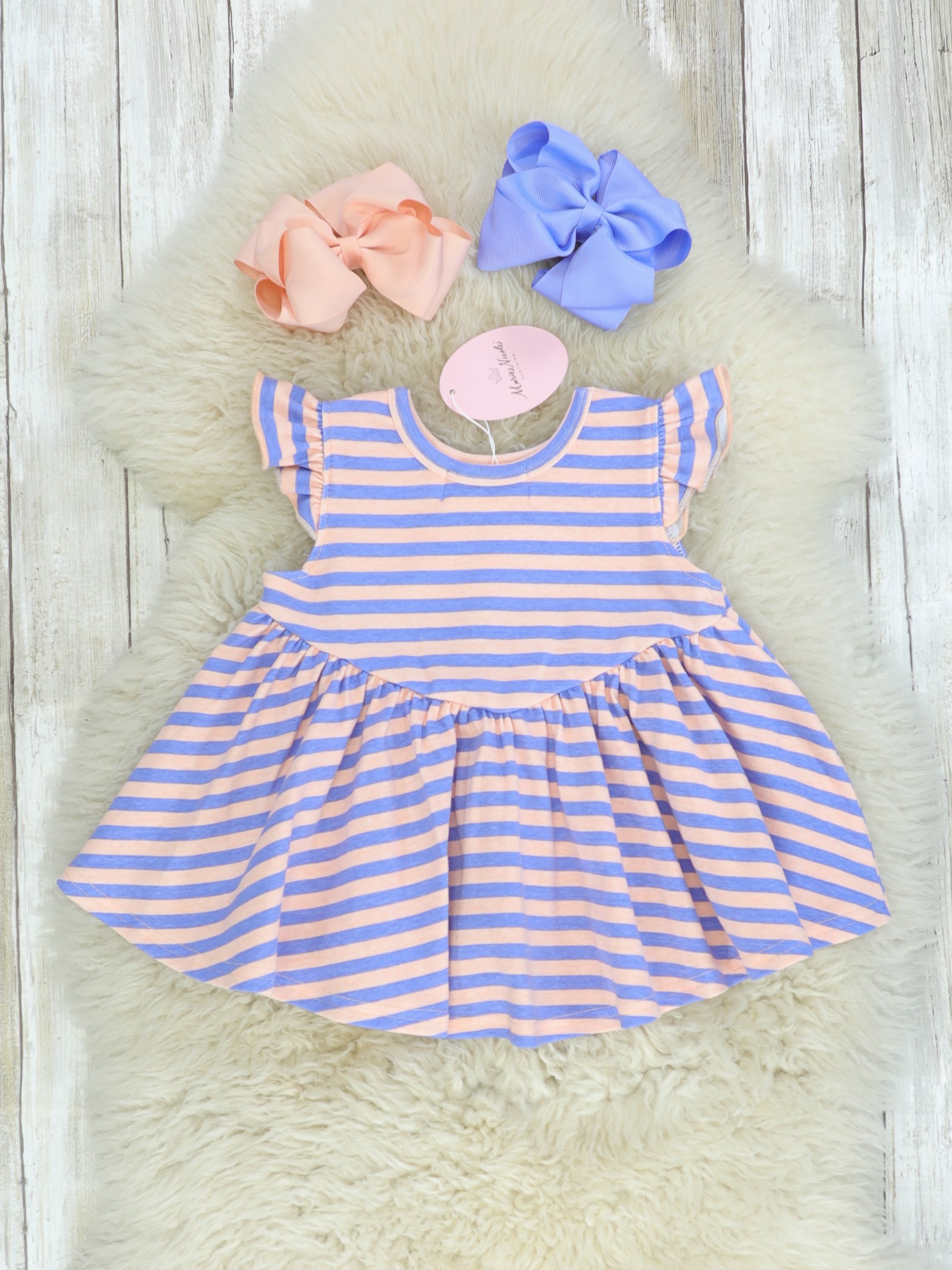 MNC's cotton hi-lo ruffle top in peach and orchid striped! This top features a hi-lo style with the prettiest flutter sleeves.
