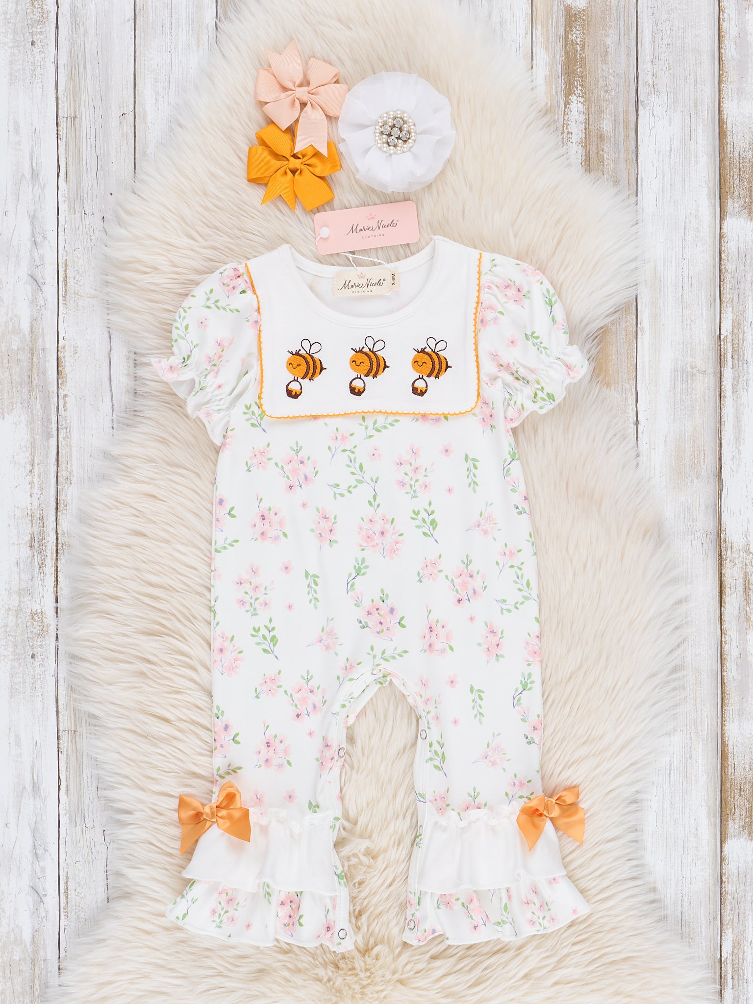 Bee in Your Bonnet Embroidered Ruffle Romper