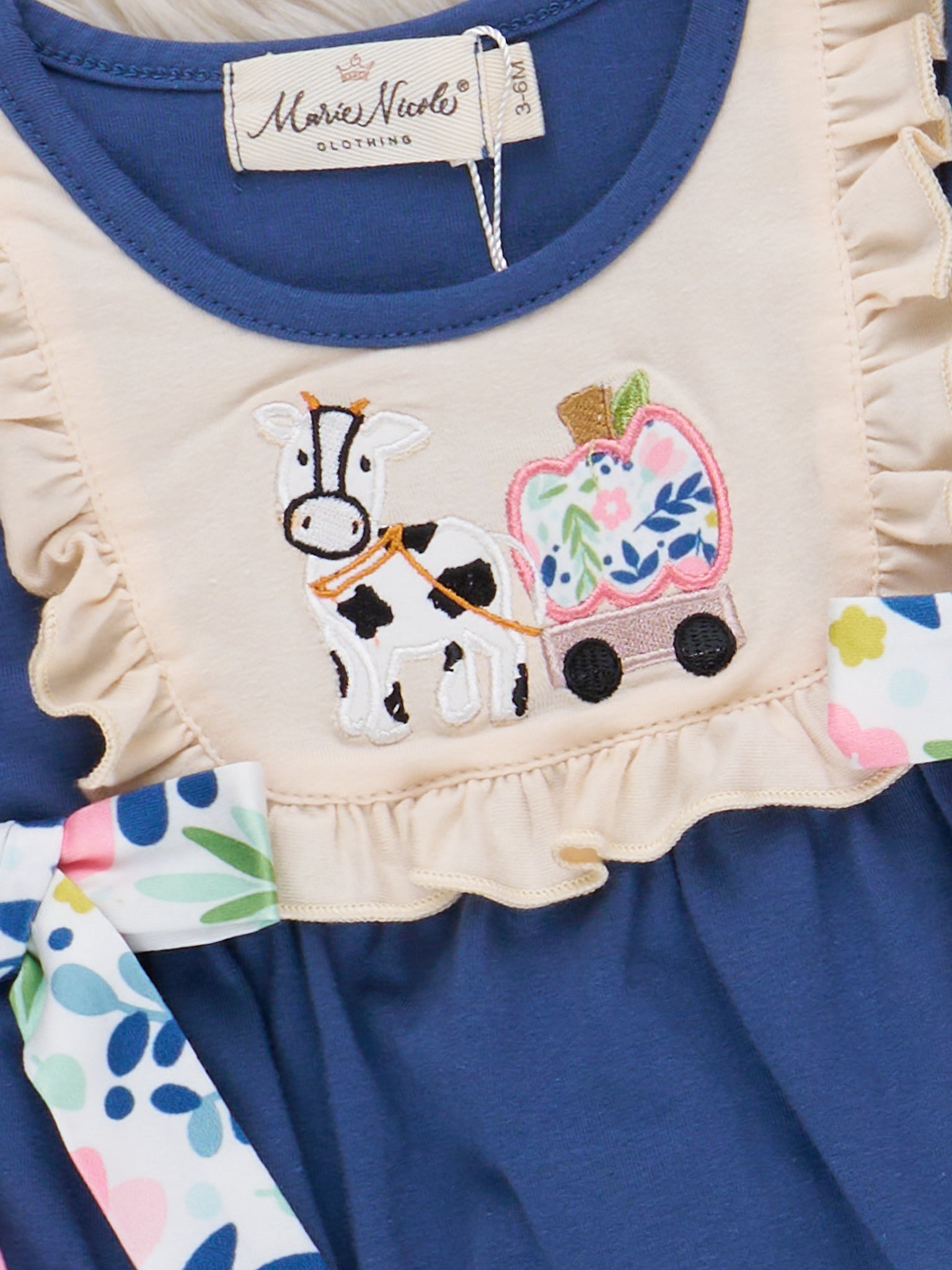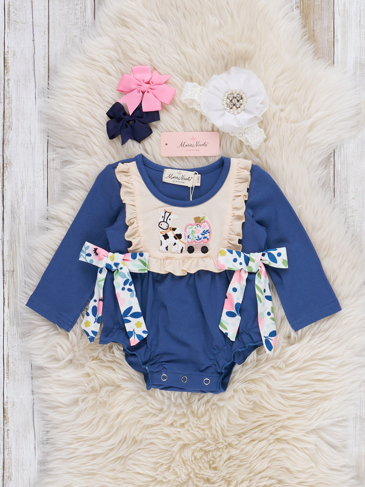 Farm Friends Pumpkin Ride Embroidered Ruffle Bubble