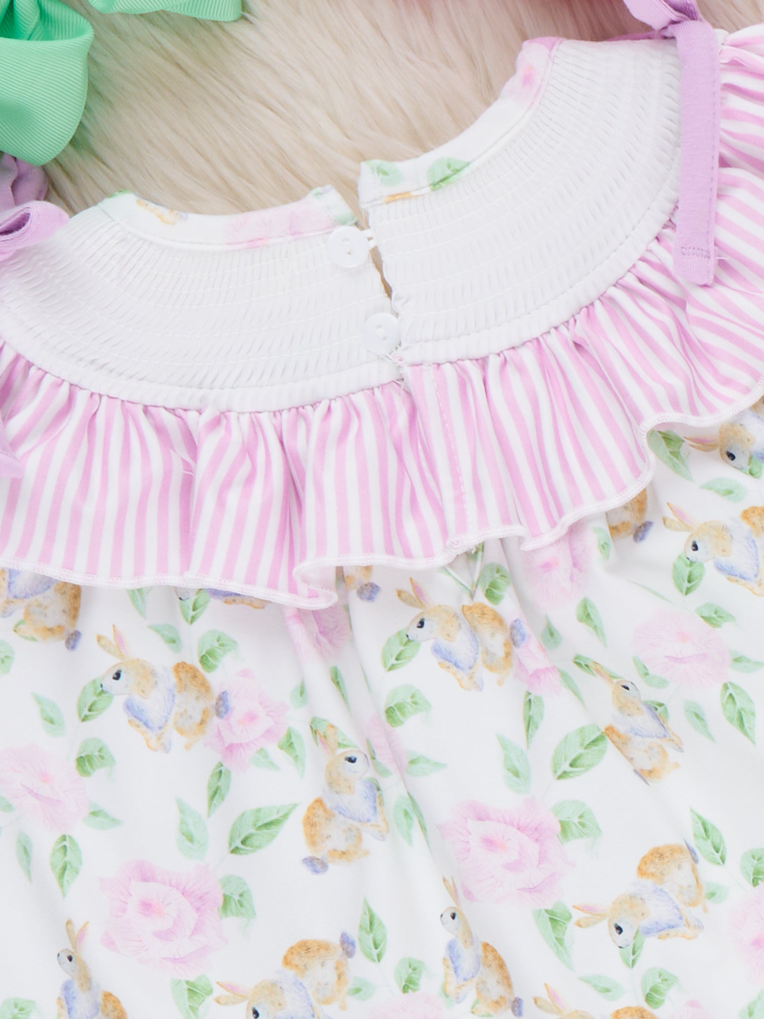 Floral Bunny Rabbits Smocked Ruffle Outfit