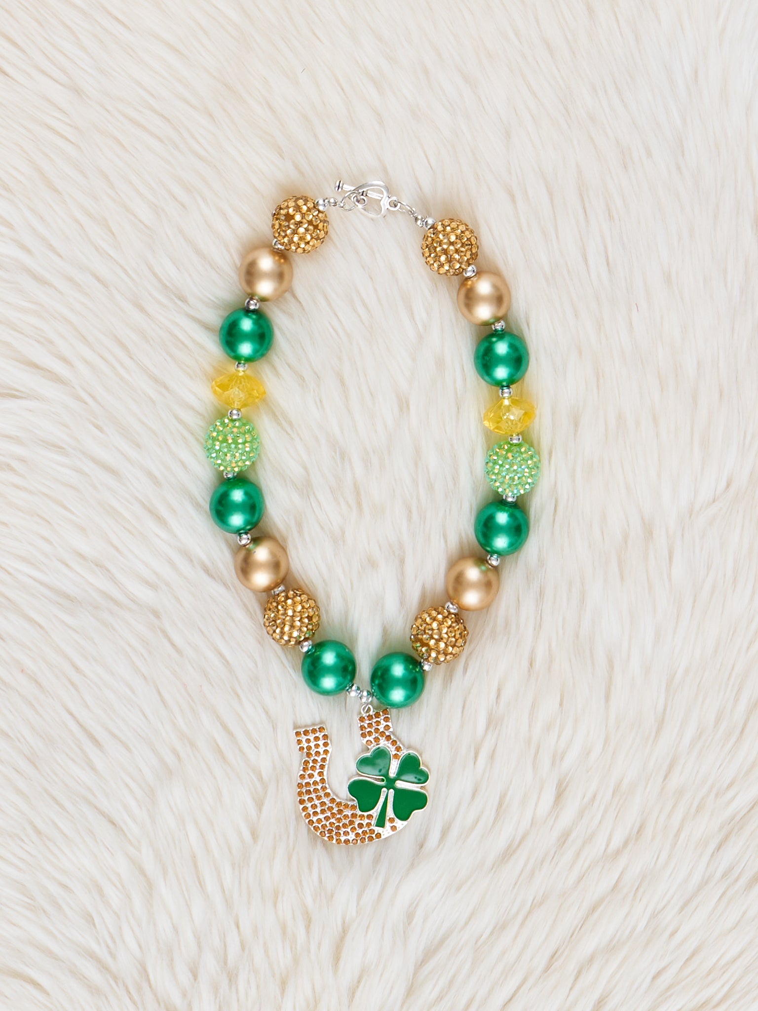 Green & Gold Lucky Shamrock Charm Bubblegum Necklace