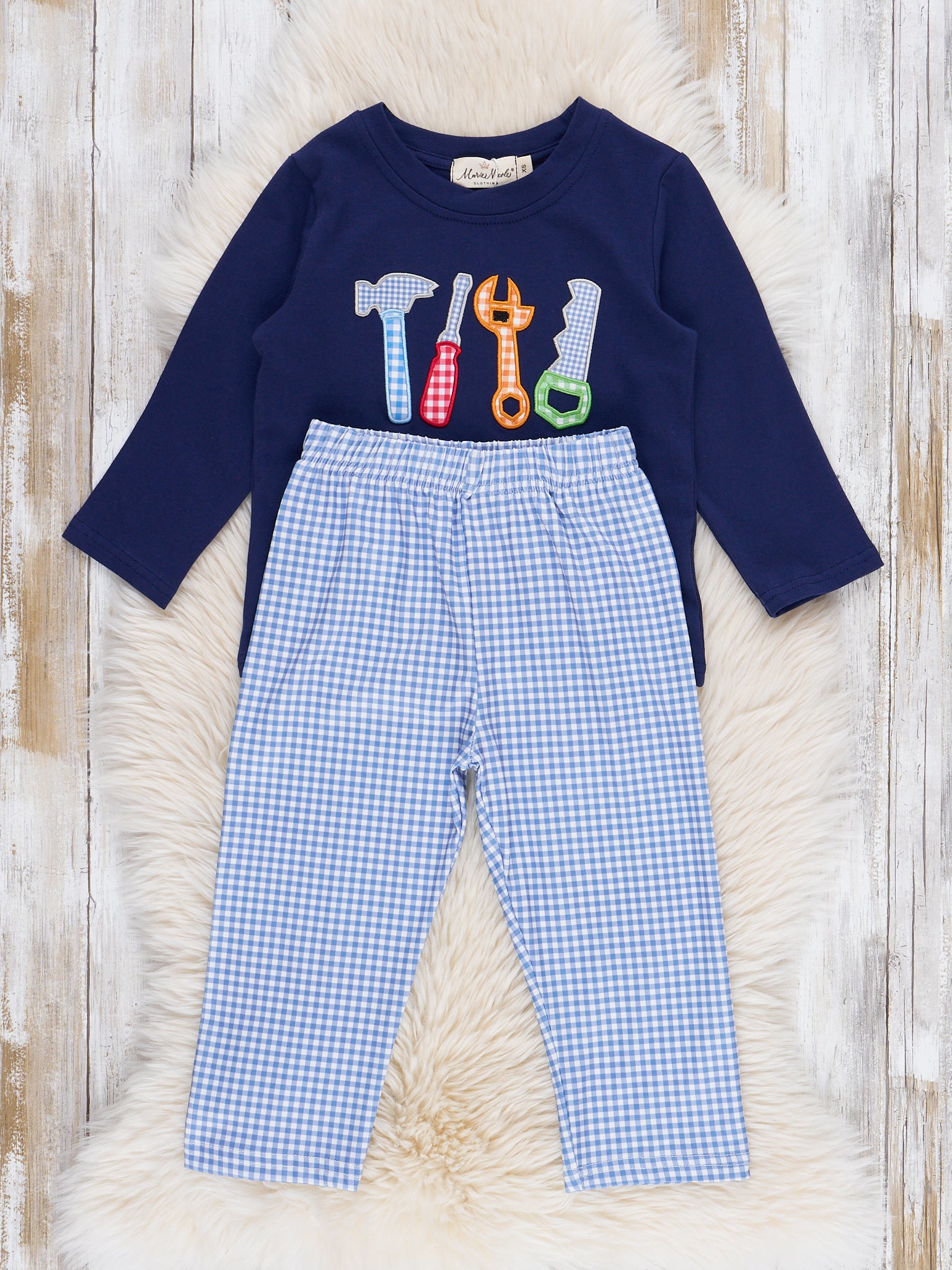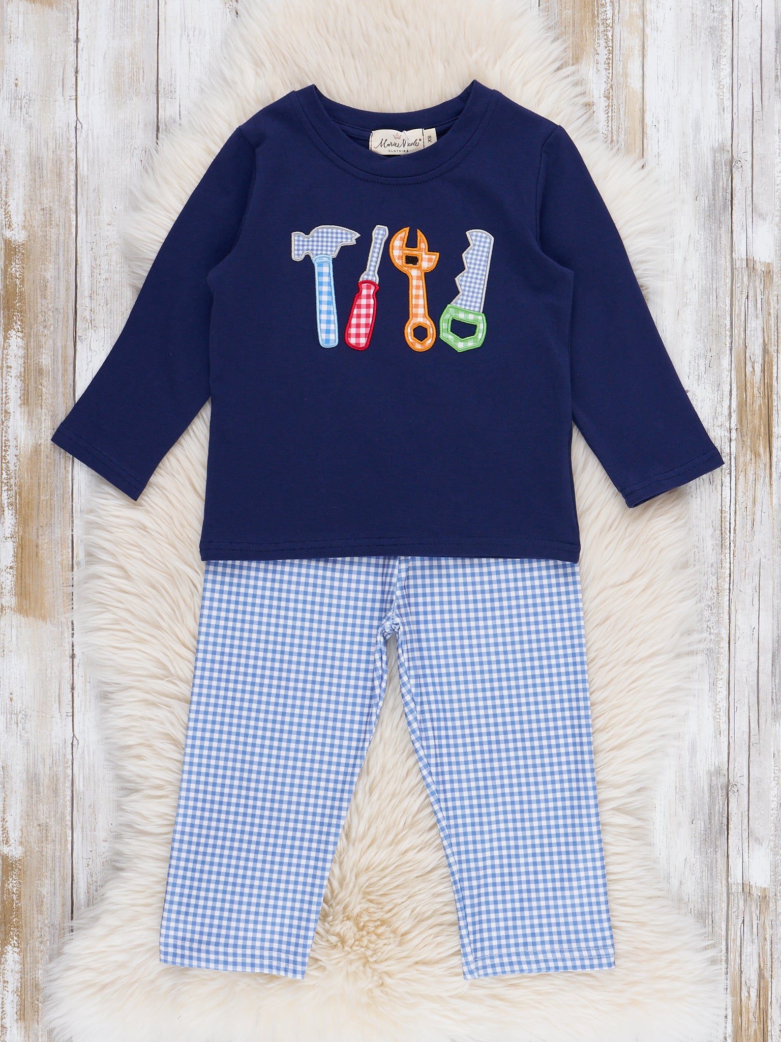 The Handy Helper Embroidered Tool Outfit is a playful and practical look perfect for your little builder in training. Featuring charming tool-themed embroidery on soft, breathable fabric, this outfit from Marie Nicole Clothing combines comfort with fun, hands-on style. Ideal for playdates, outdoor adventures, or any day she wants to feel ready to fix, build, and create.