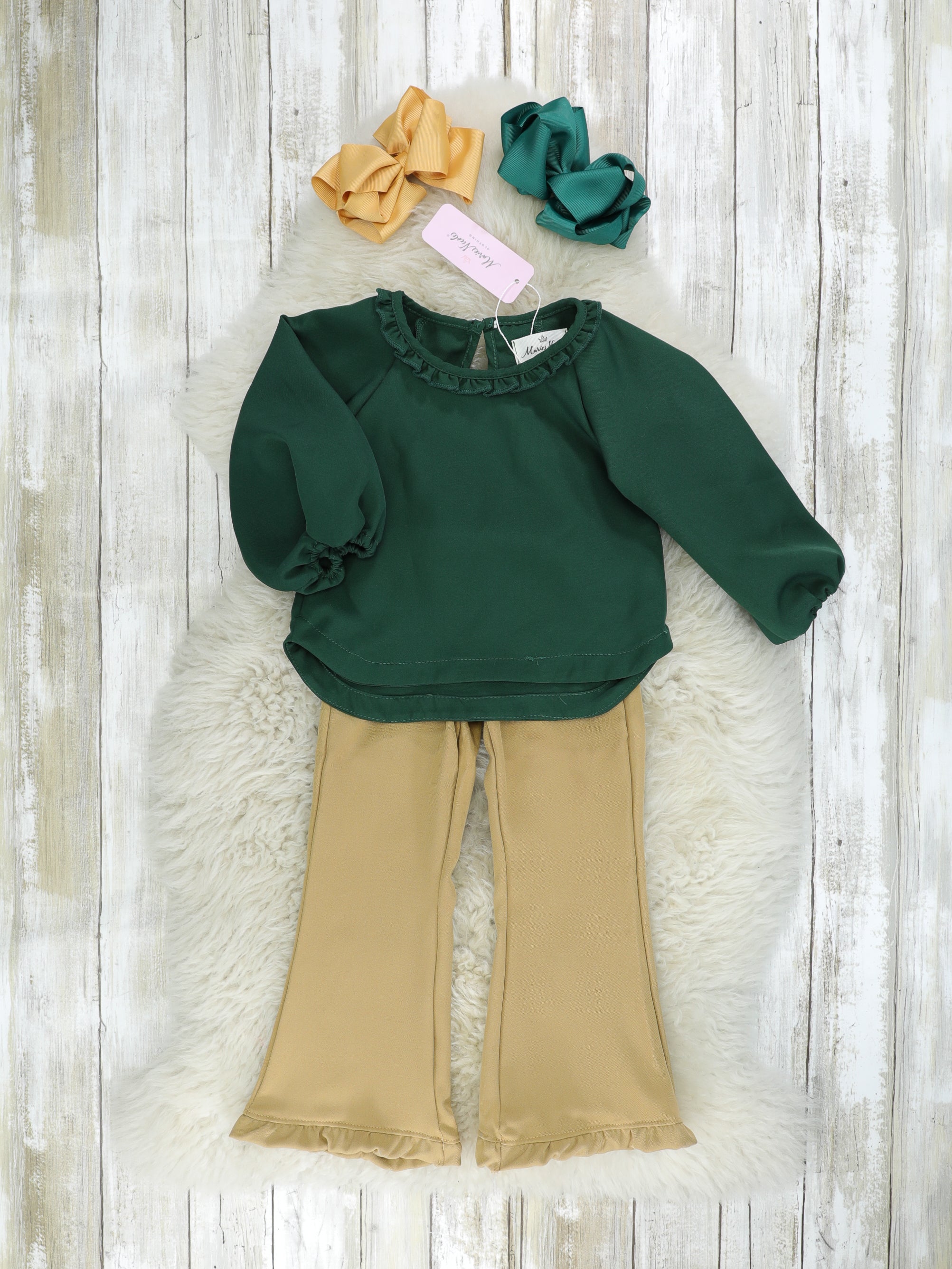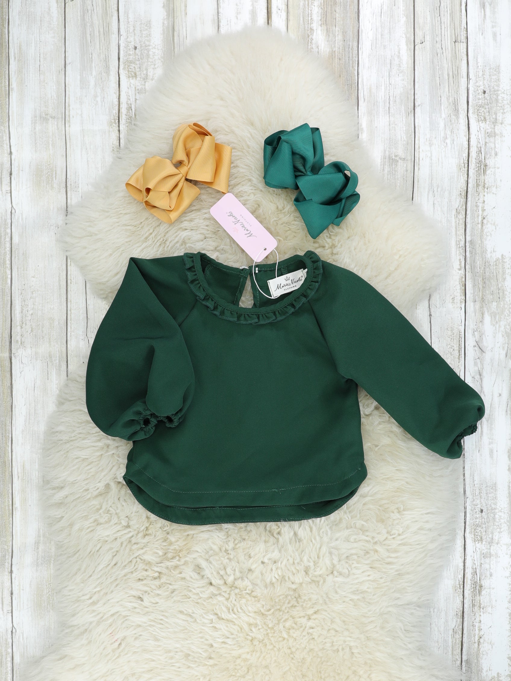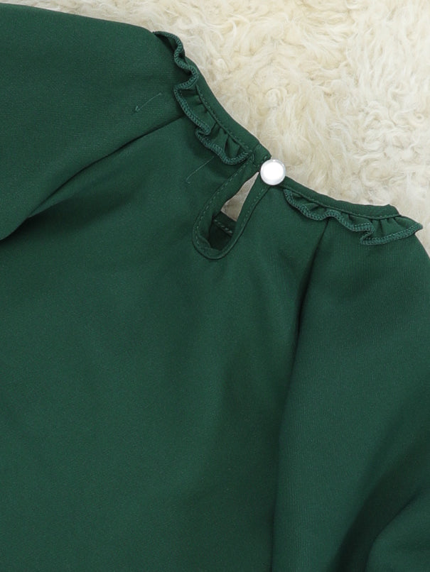 Hunter Green Puff Sleeve Ruffle Top