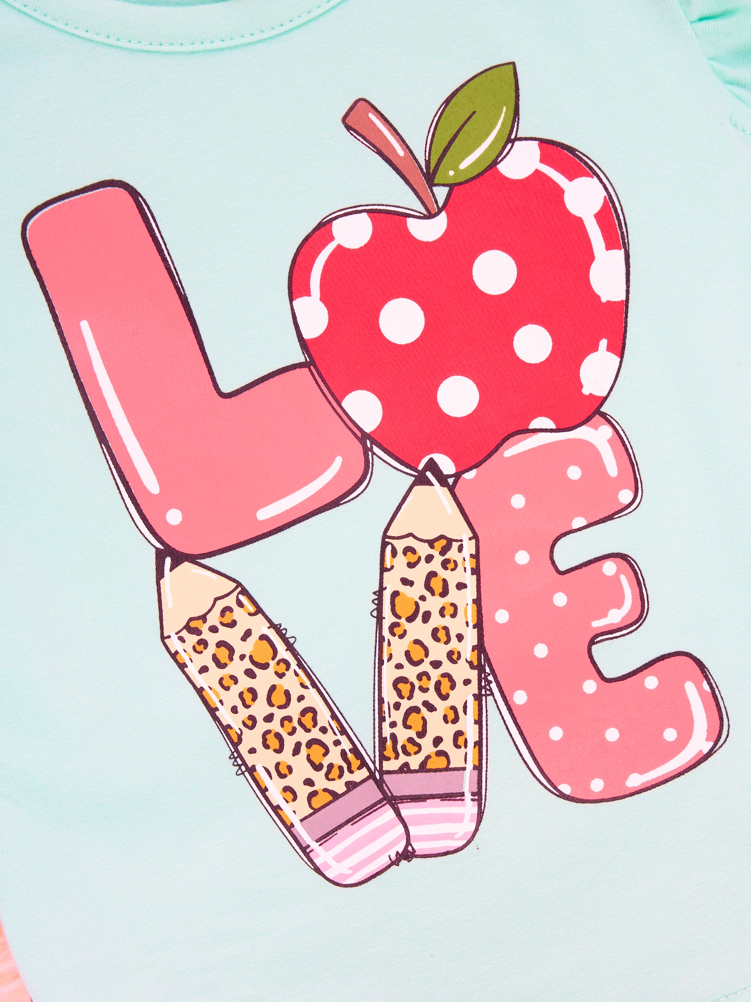 Leopard Polka Dot "LOVE" Apple Ruffle Outfit
