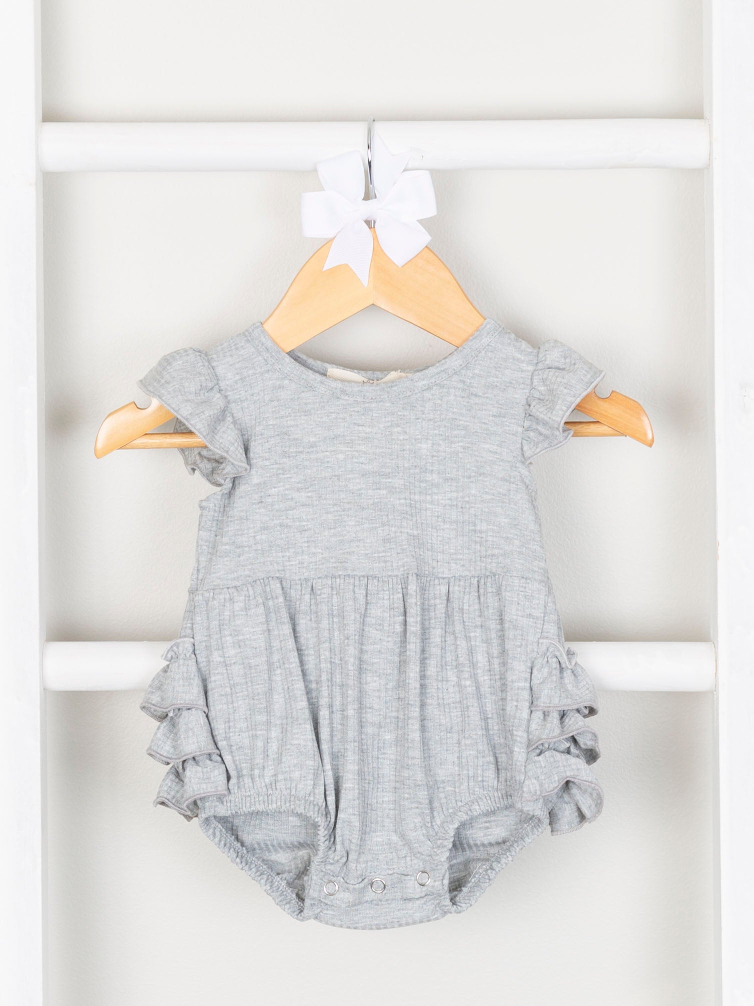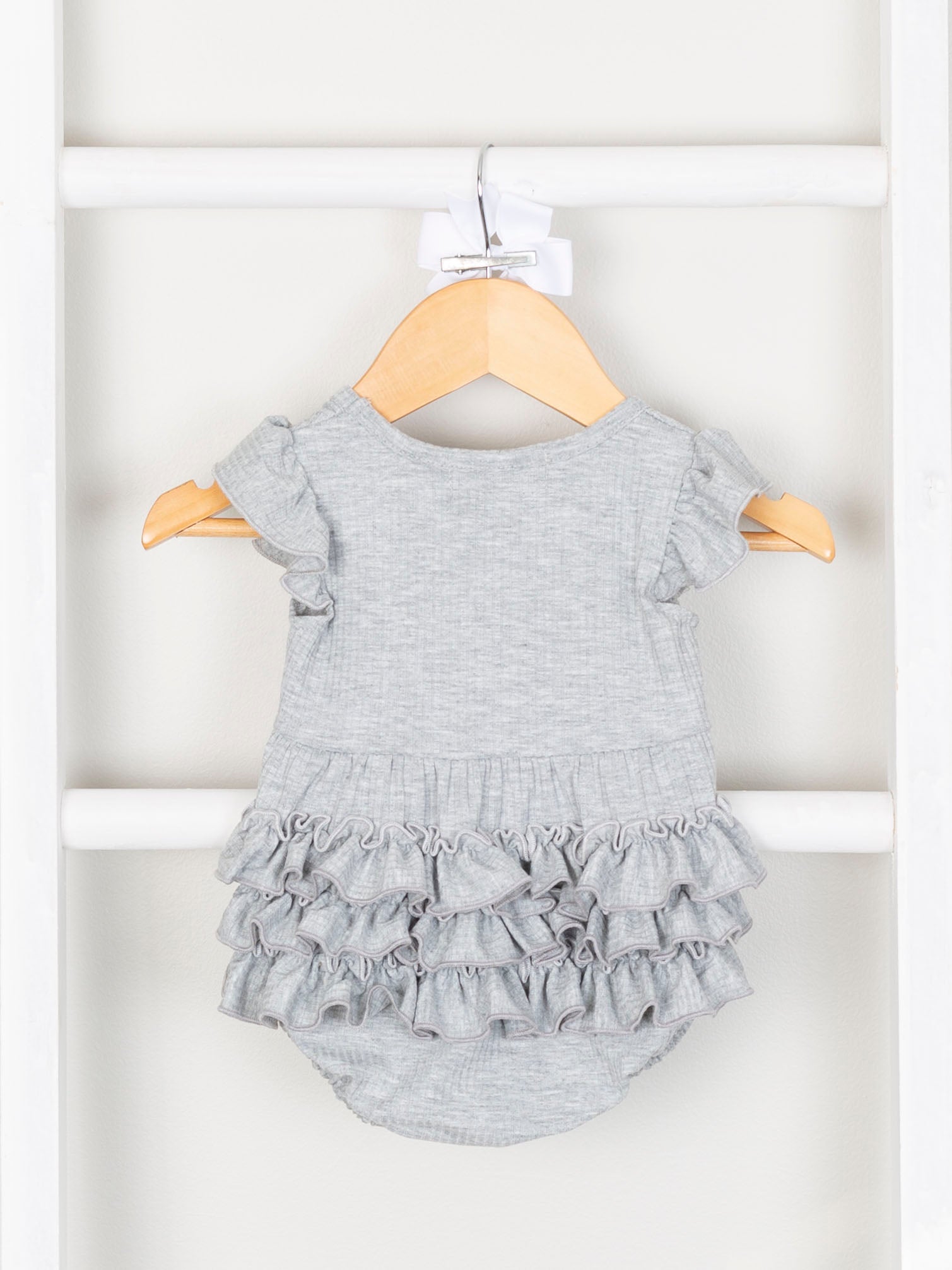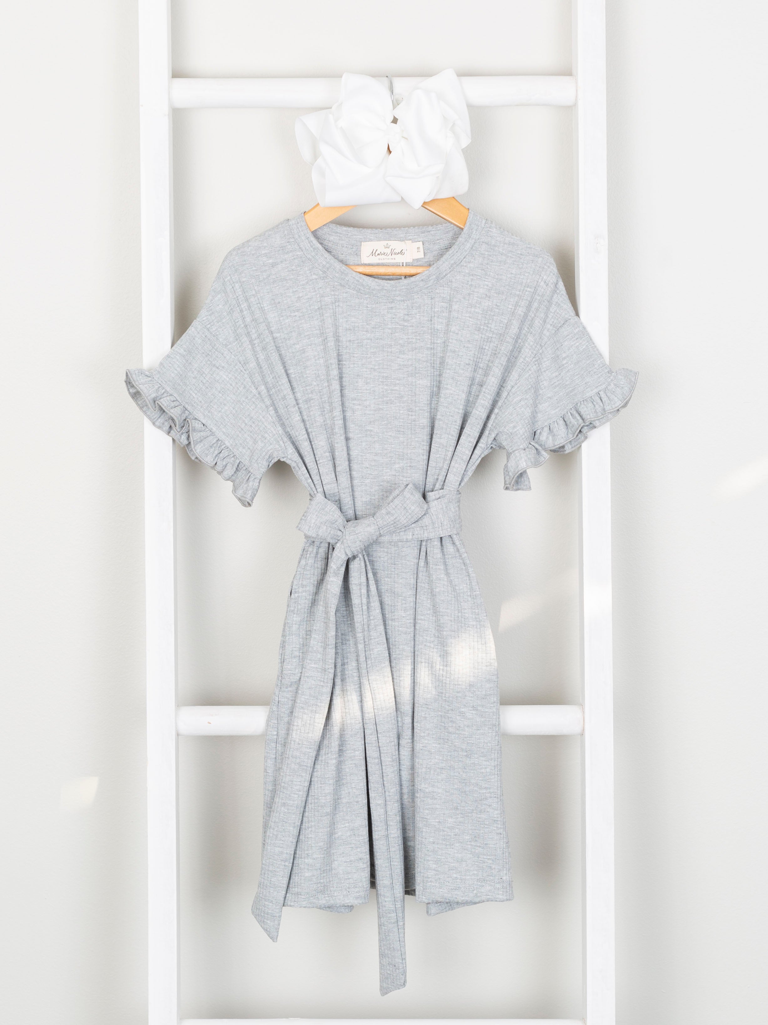 Our Mom & Me Heather Grey Ribbed Ruffle Dress & Bubble brings a little bit of "me" time with a whole lot of “mom" style. Put a modern spin on this classic look with a tie-at-the-waist ribbed dress and coordinating bubble for your mini-me. Time to get ready for a fantastic mother-daughter outing.