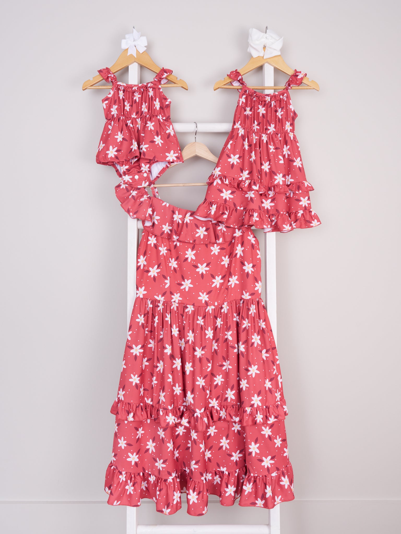Mom & Me Red Daisy Ruffle Dress & Romper