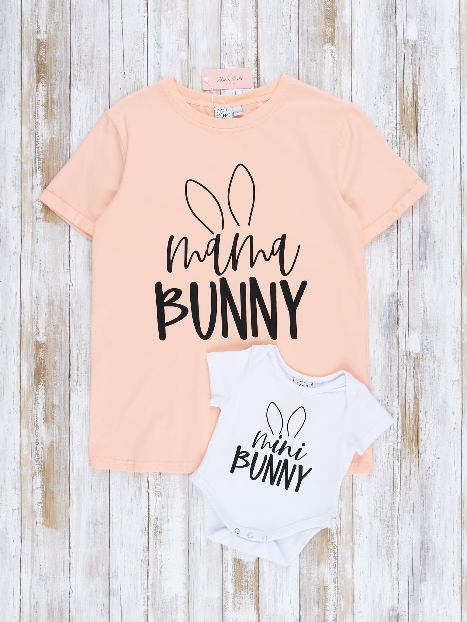 Match all your little bunnies this Easter! The Mom & Me "Mama Bunny" Cotton Shirt is a gorgeous coral color & features a "Mama Bunny" print that is super cute! Perfect for fun spring moments with your little one.