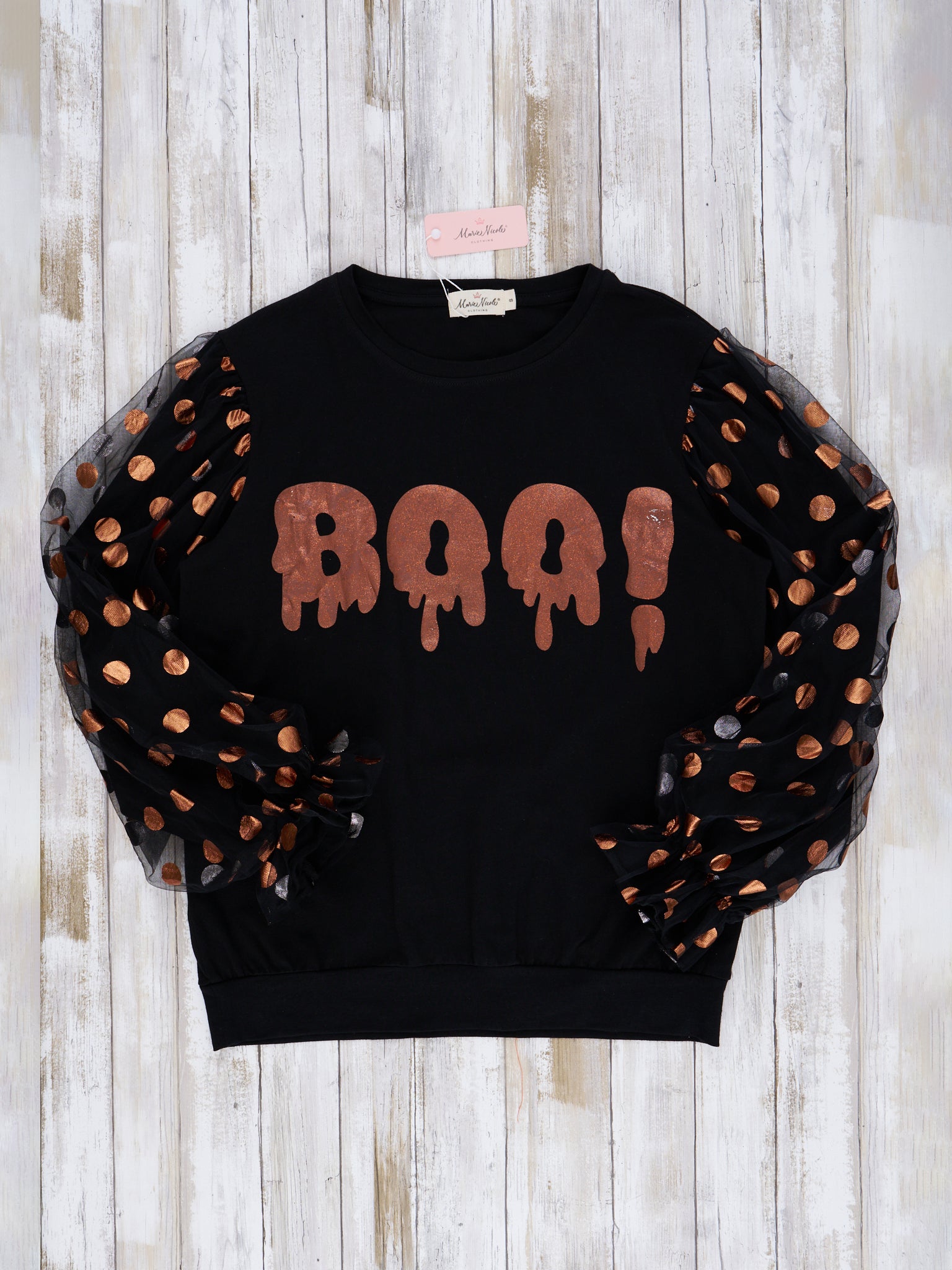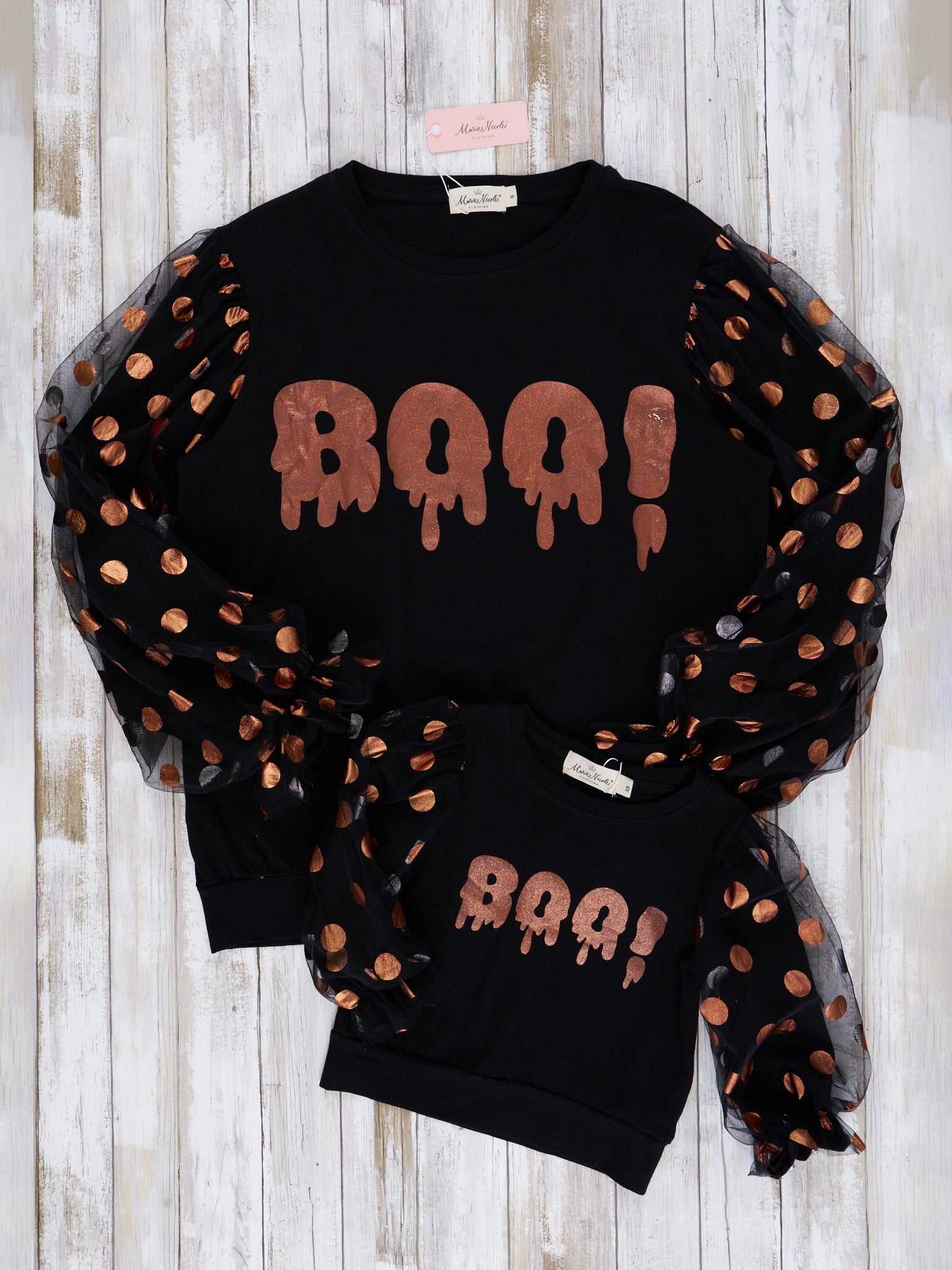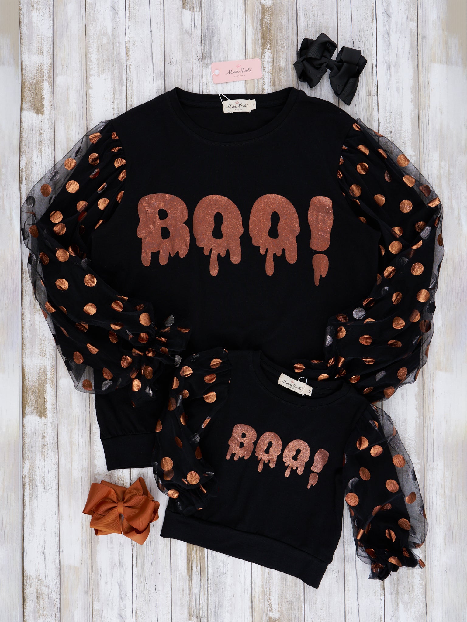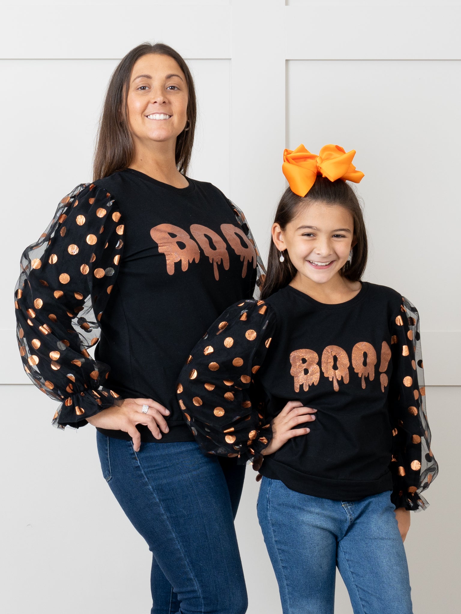 Mom & Me Orange & Black "Boo" Polka Dot Top