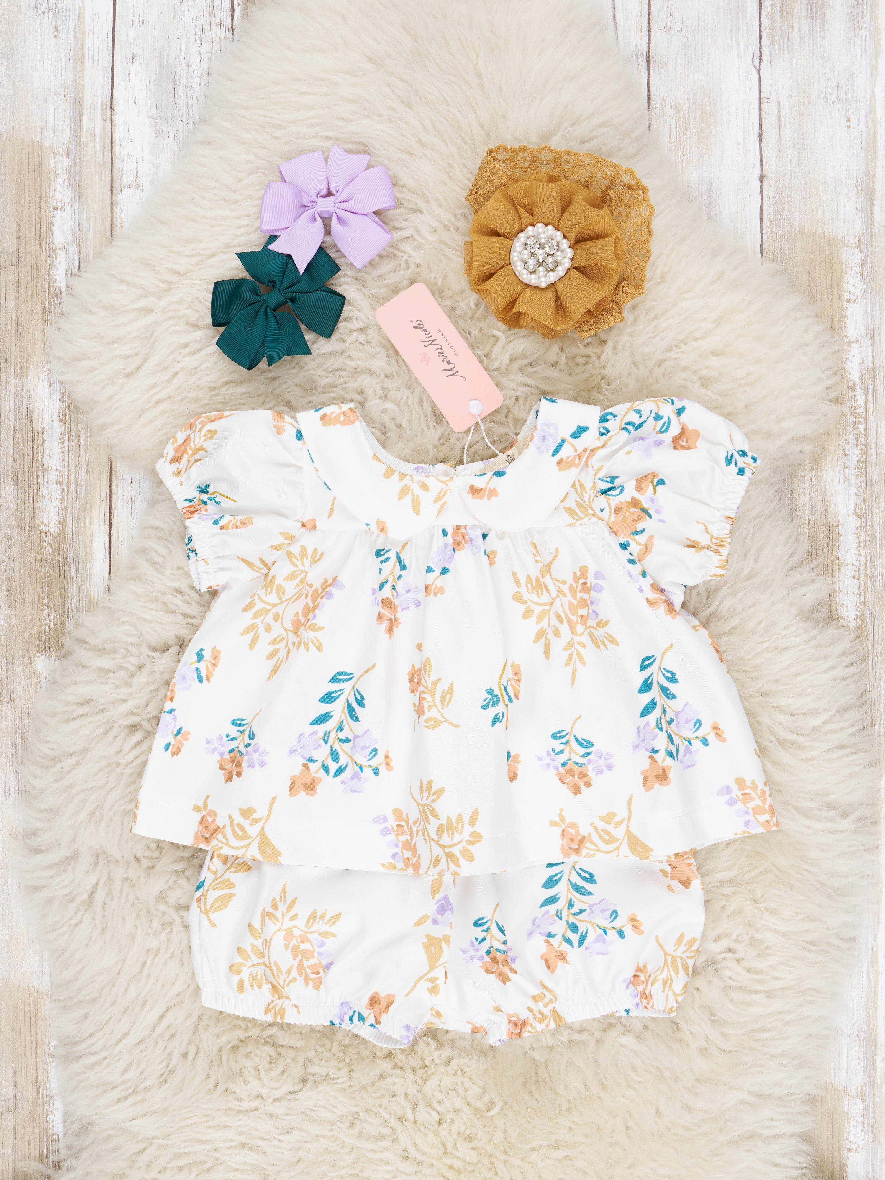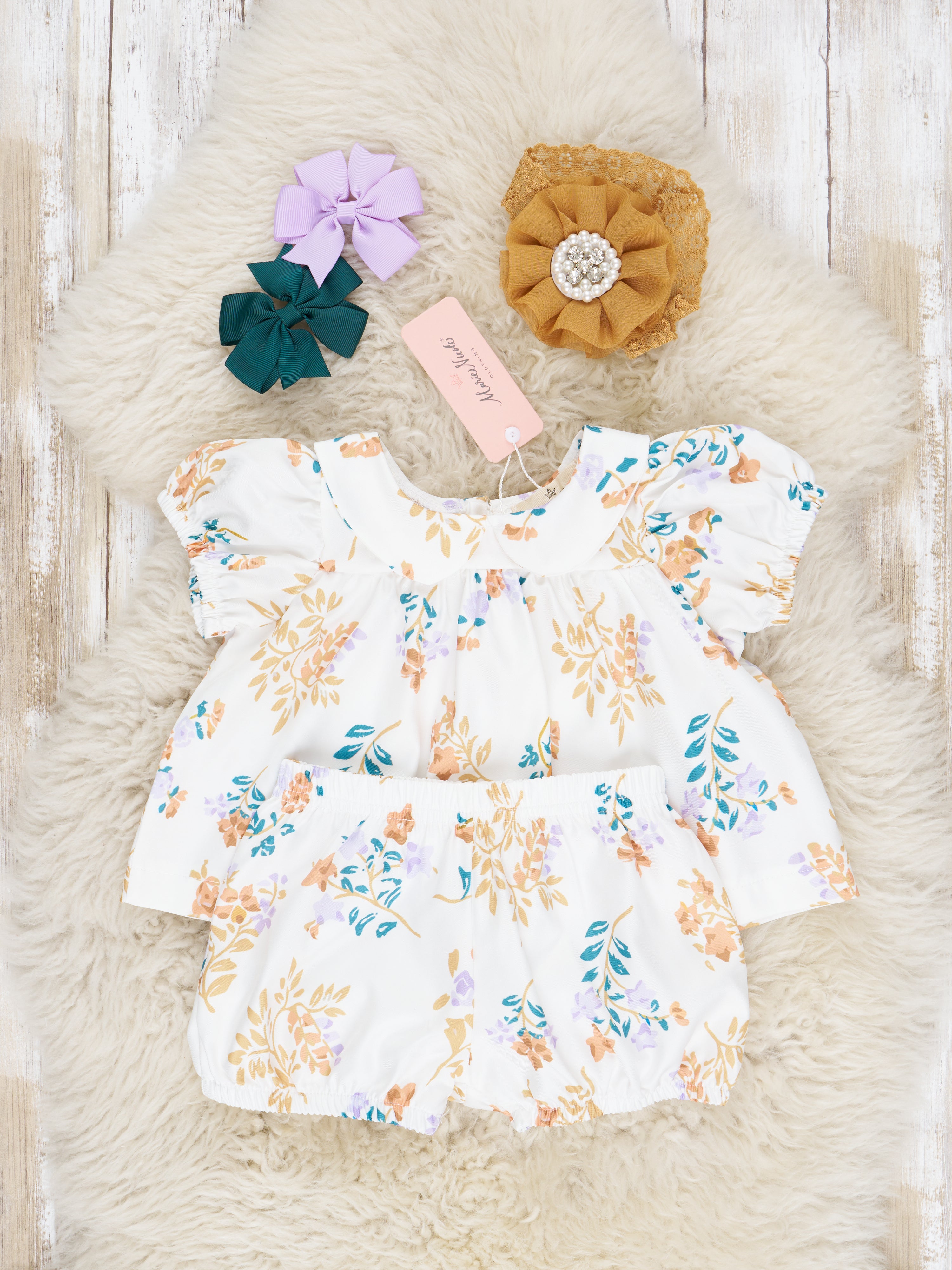 Dress your little one in this irresistibly precious Mustard Floral Vintage Bloomers Outfit! This snazzy ensemble features a sweet peter pan collar, mustard florals, and comfy bloomers with an elastic waistband.