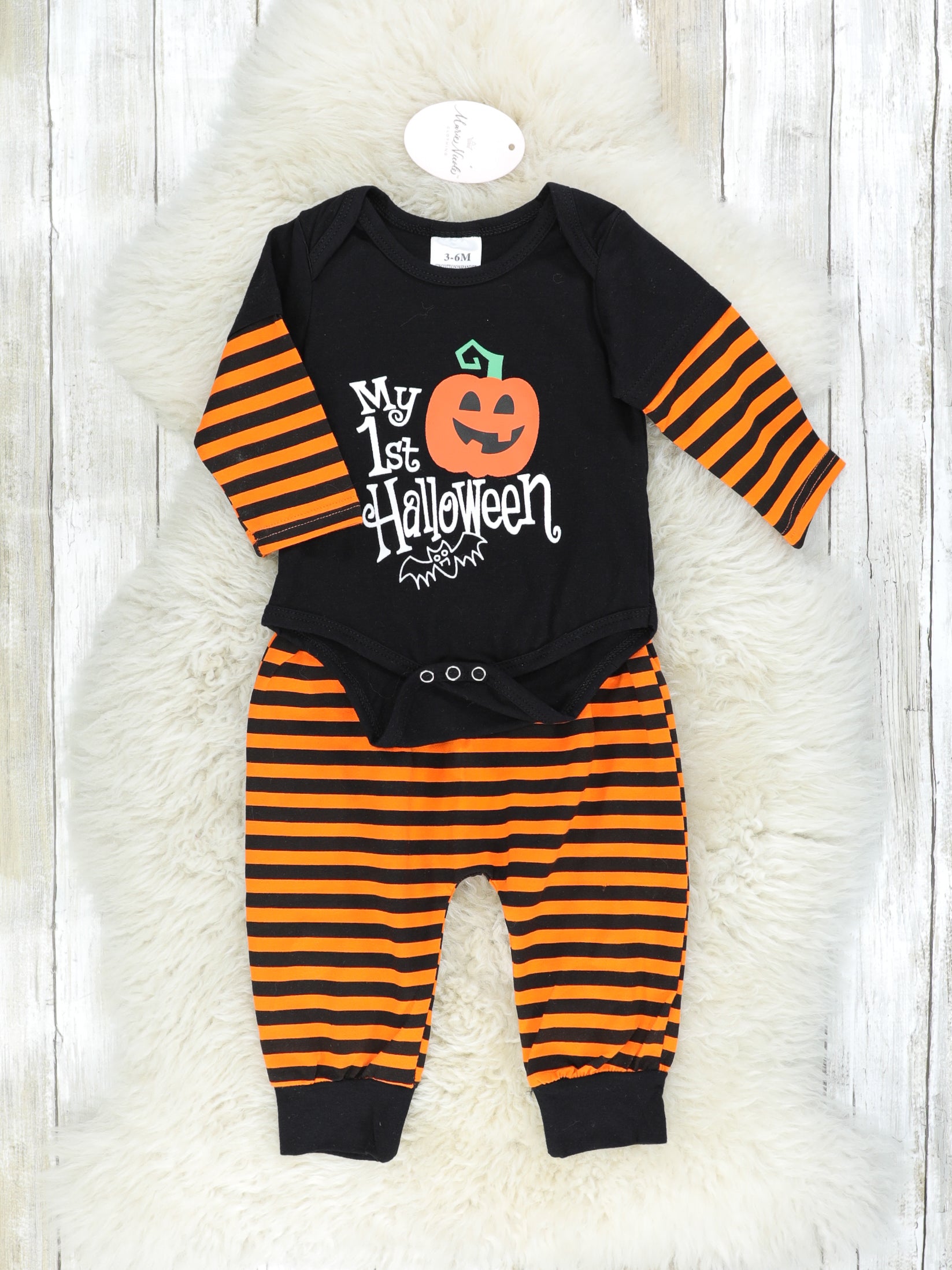 "My First Halloween" Onesie & Orange Striped Joggers Outfit