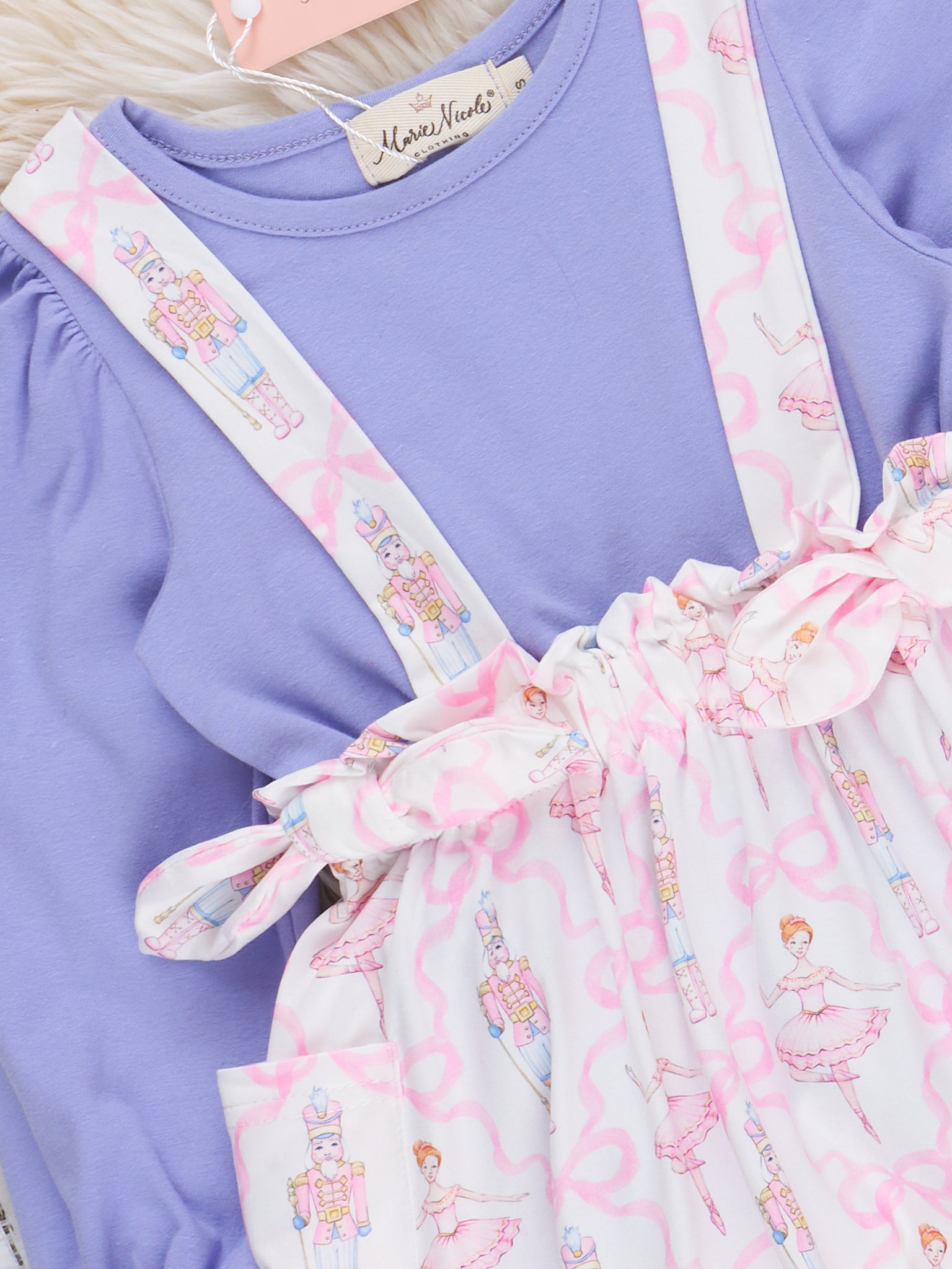 Add some festive flair to your little one's wardrobe with our Nutcracker Bows Skirtall Set. Perfect for Christmas celebrations, this girls' outfit features a charming print of nutcrackers and fairy princesses adorned with bows. Plus, it comes in a sister set for coordinating siblings. Sleigh all day with this adorable set!
