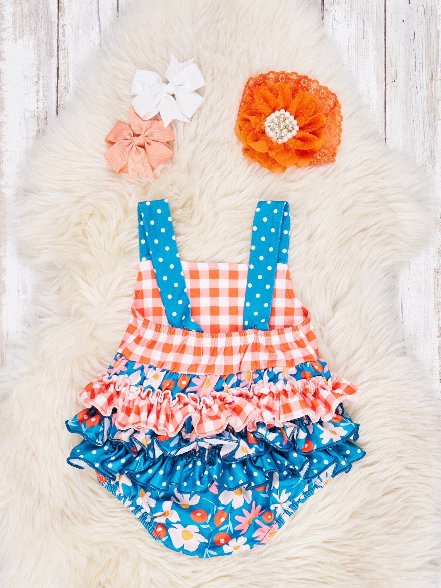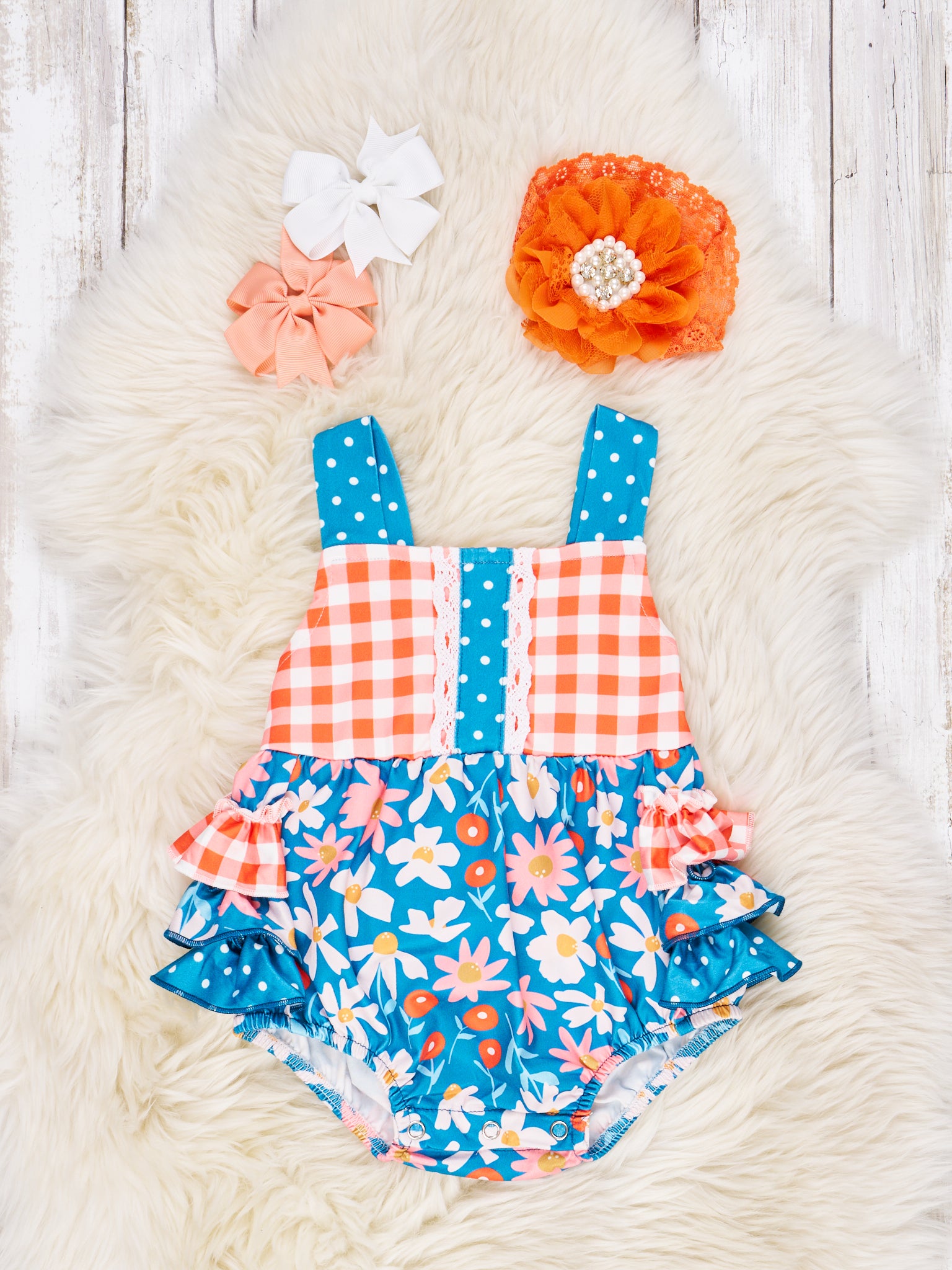 Orange Gingham Floral Romper