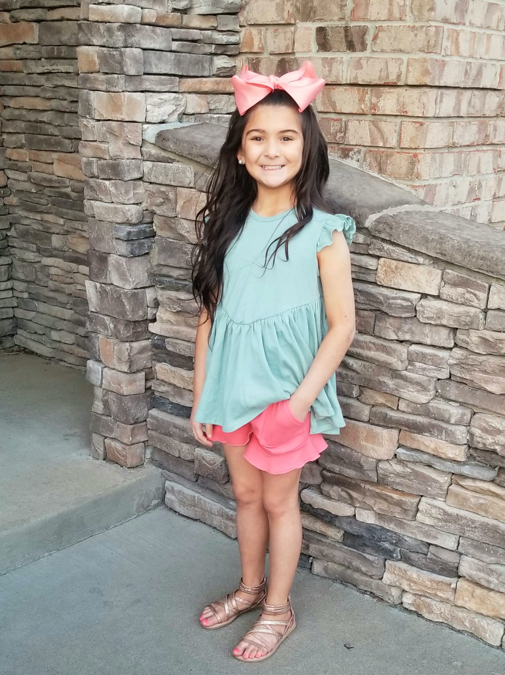 Kaylee is 21 pounds, 29 inches tall wearing a size 12/18MOS.