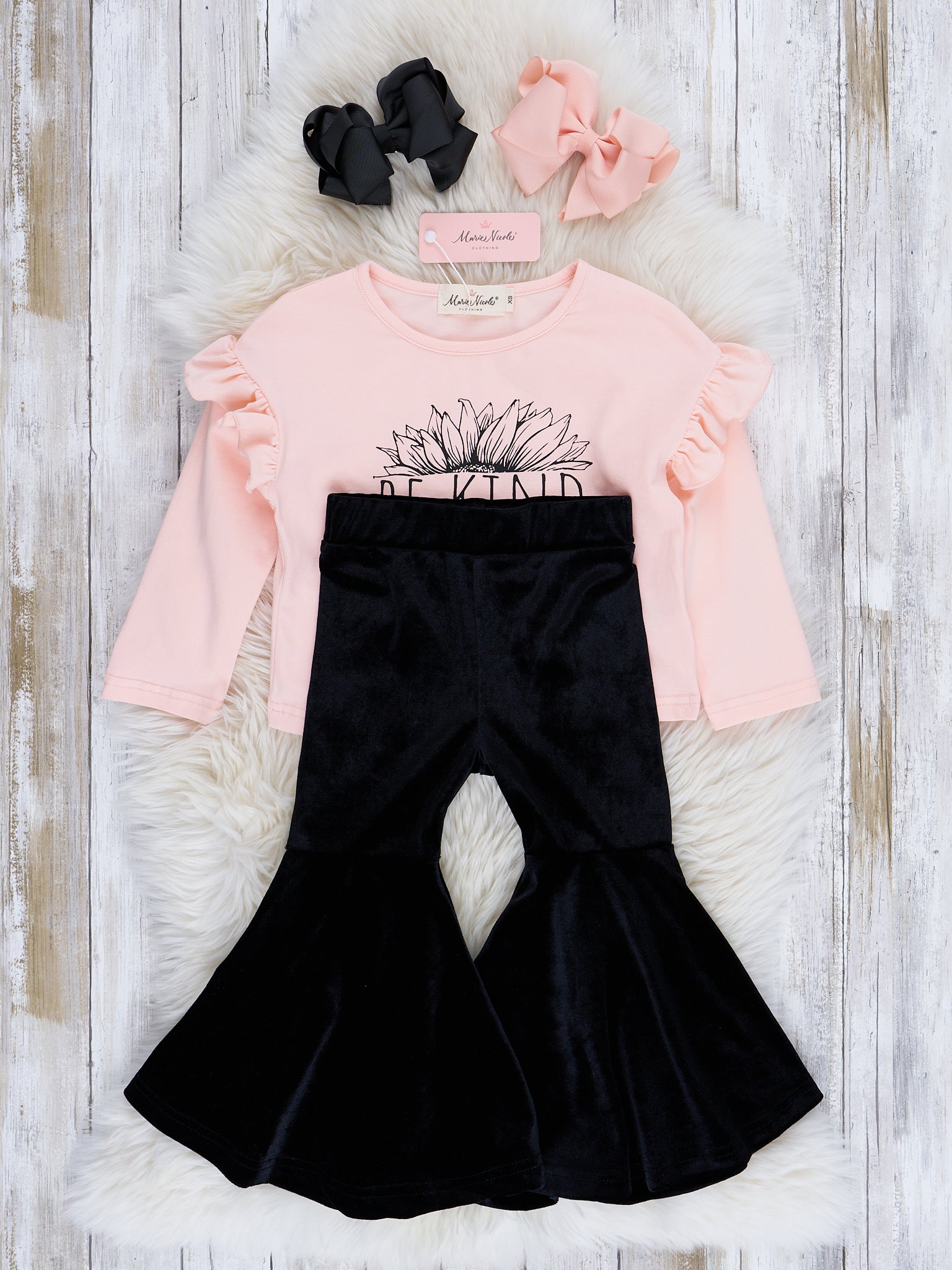 Pink & Black "Be Kind" Bell Bottom Outfit