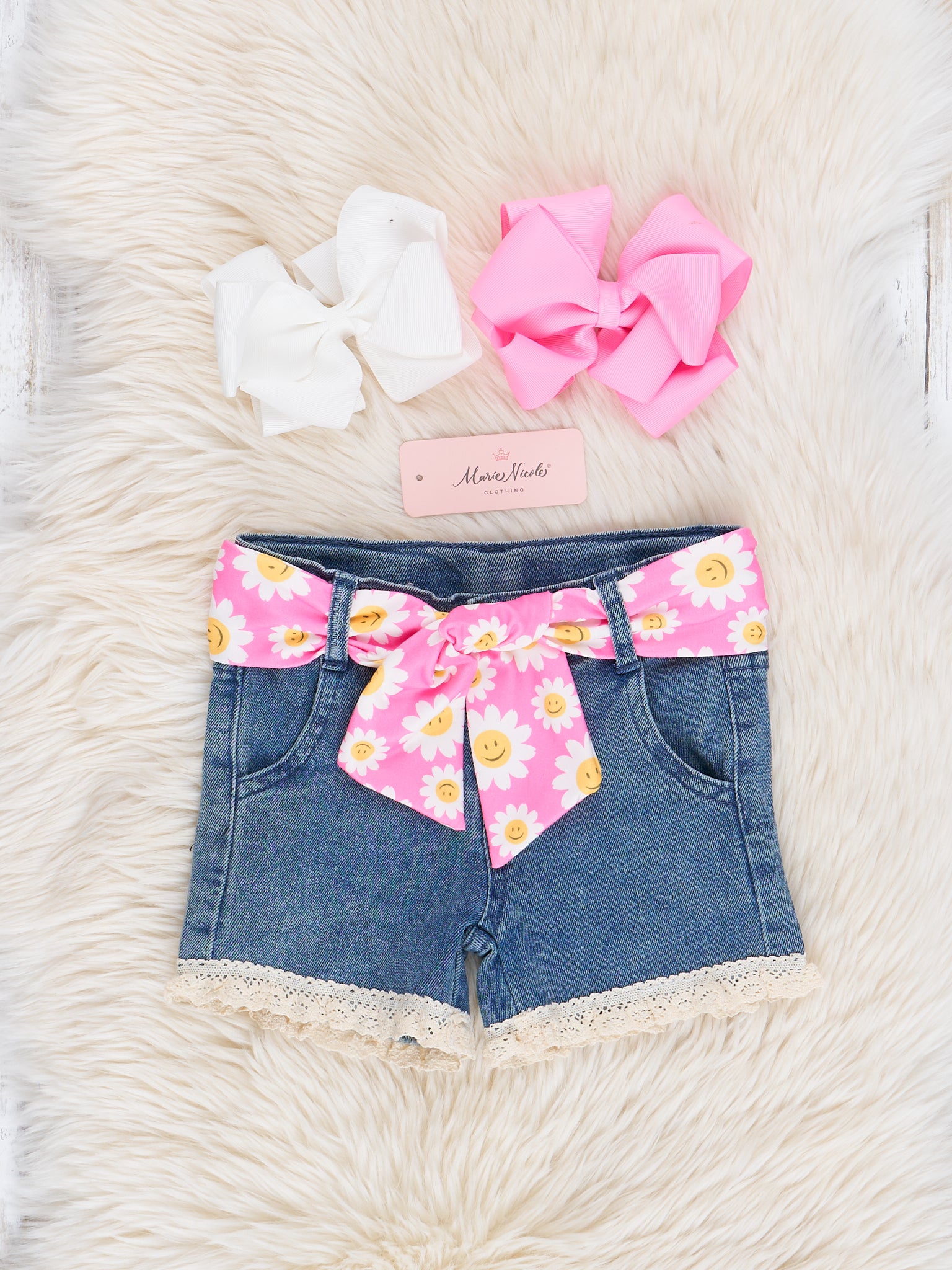 Ready to rock this summer in style? Our Pink Daisies "Mama's Bestie" Denim Shorts Outfit is here to make it happen! With lace hem and a cute daisy tie belt, your little girl will be a fashion icon. Perfect for playdates or family outings, this outfit is a must-have for any fashion-forward mama's bestie.