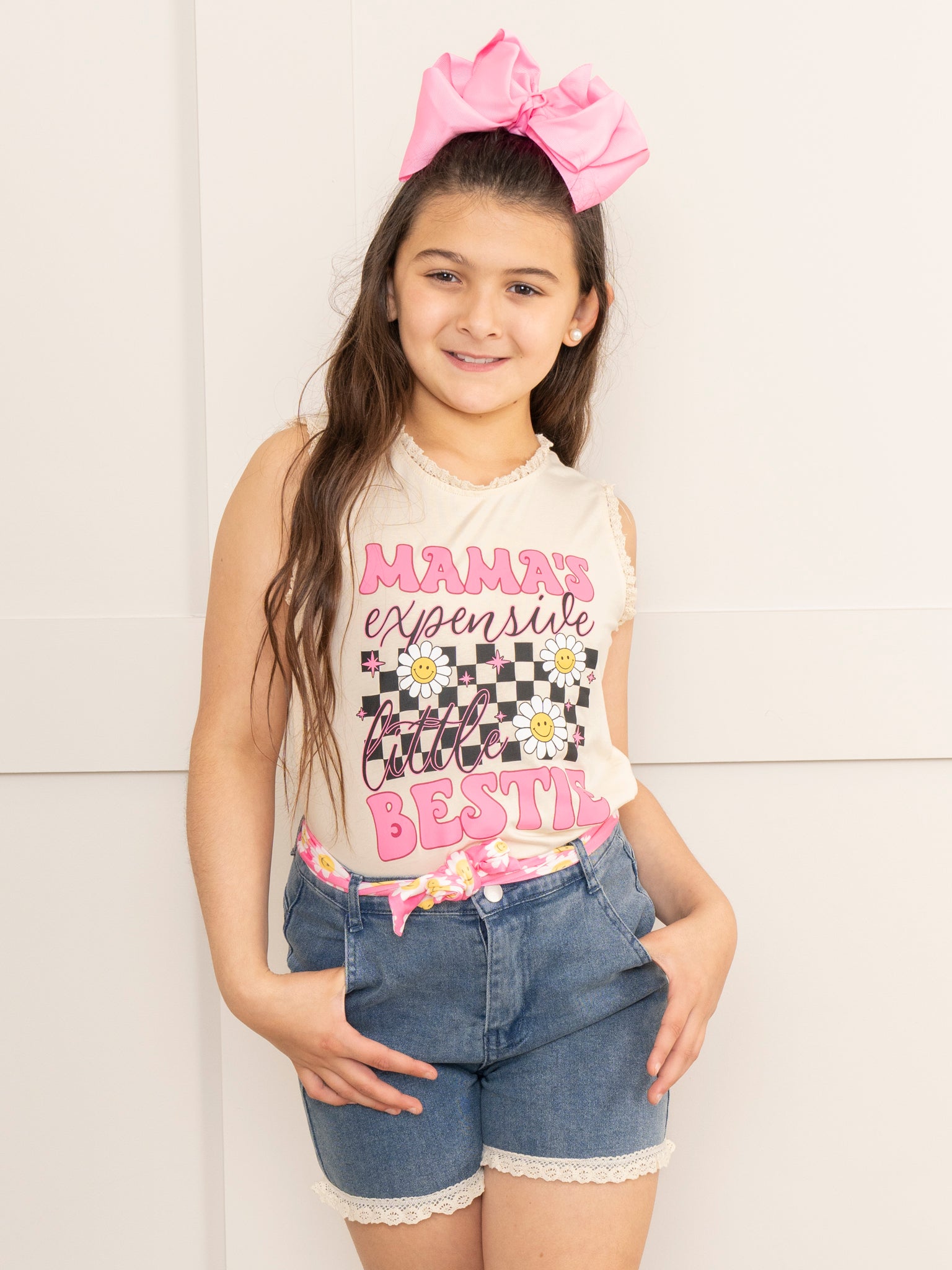 Pink Daisies "Mama's Bestie" Denim Shorts Outfit