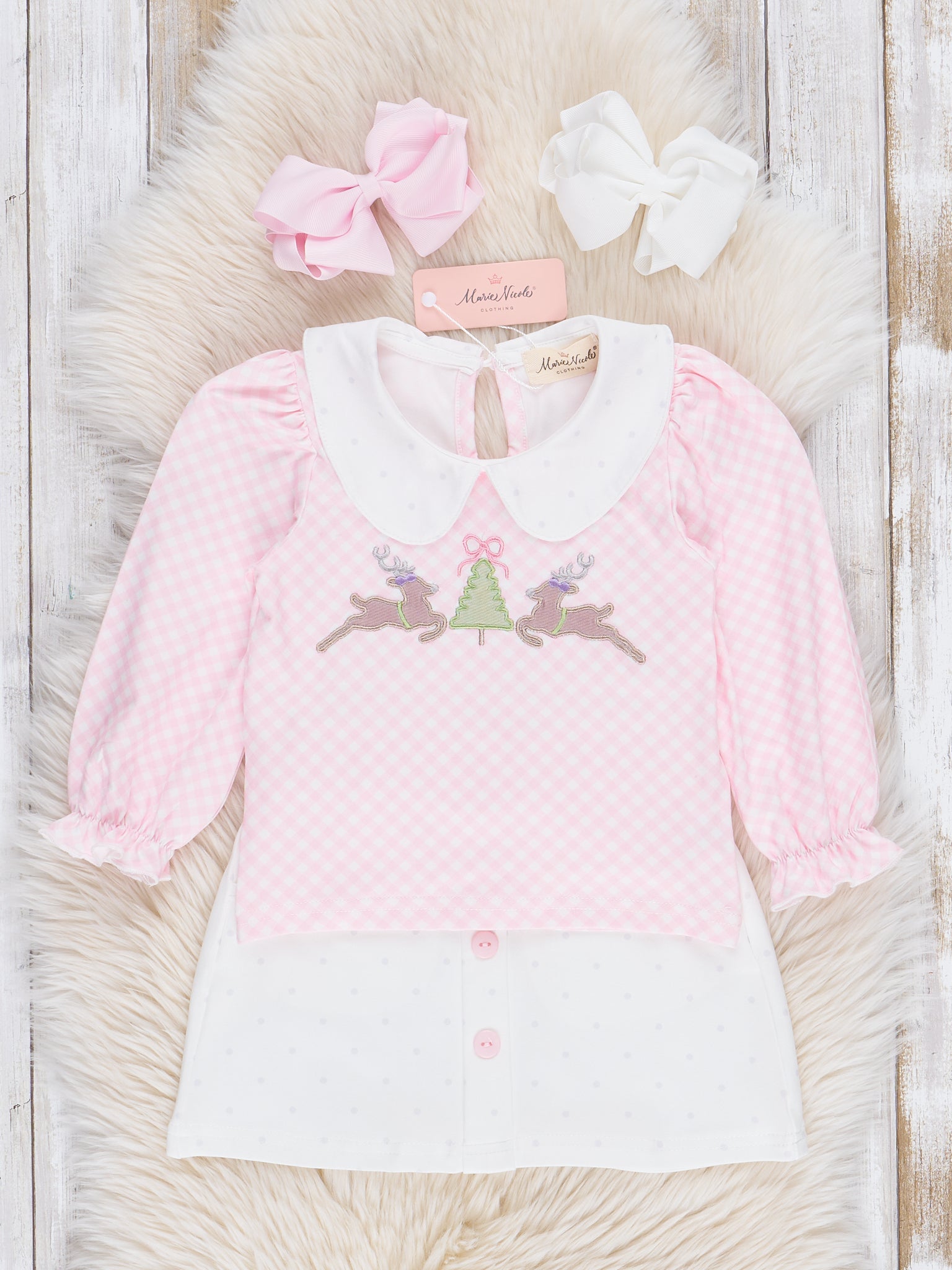 Pink Reindeer Prancing Reindeer Outfit w/ Skirt