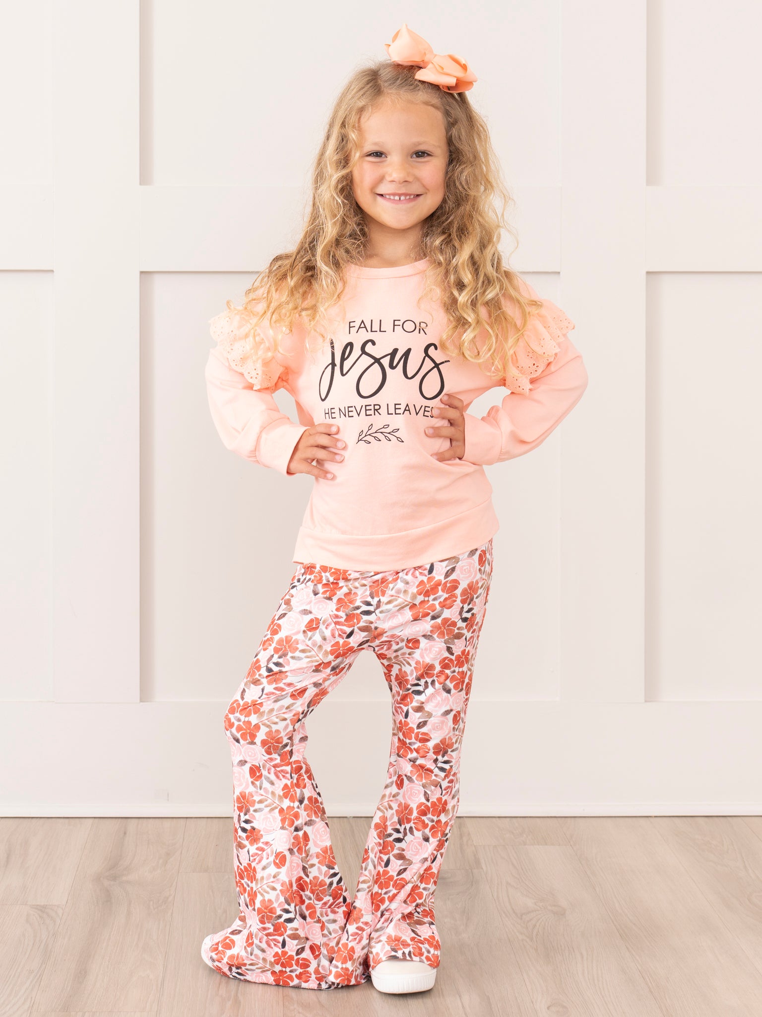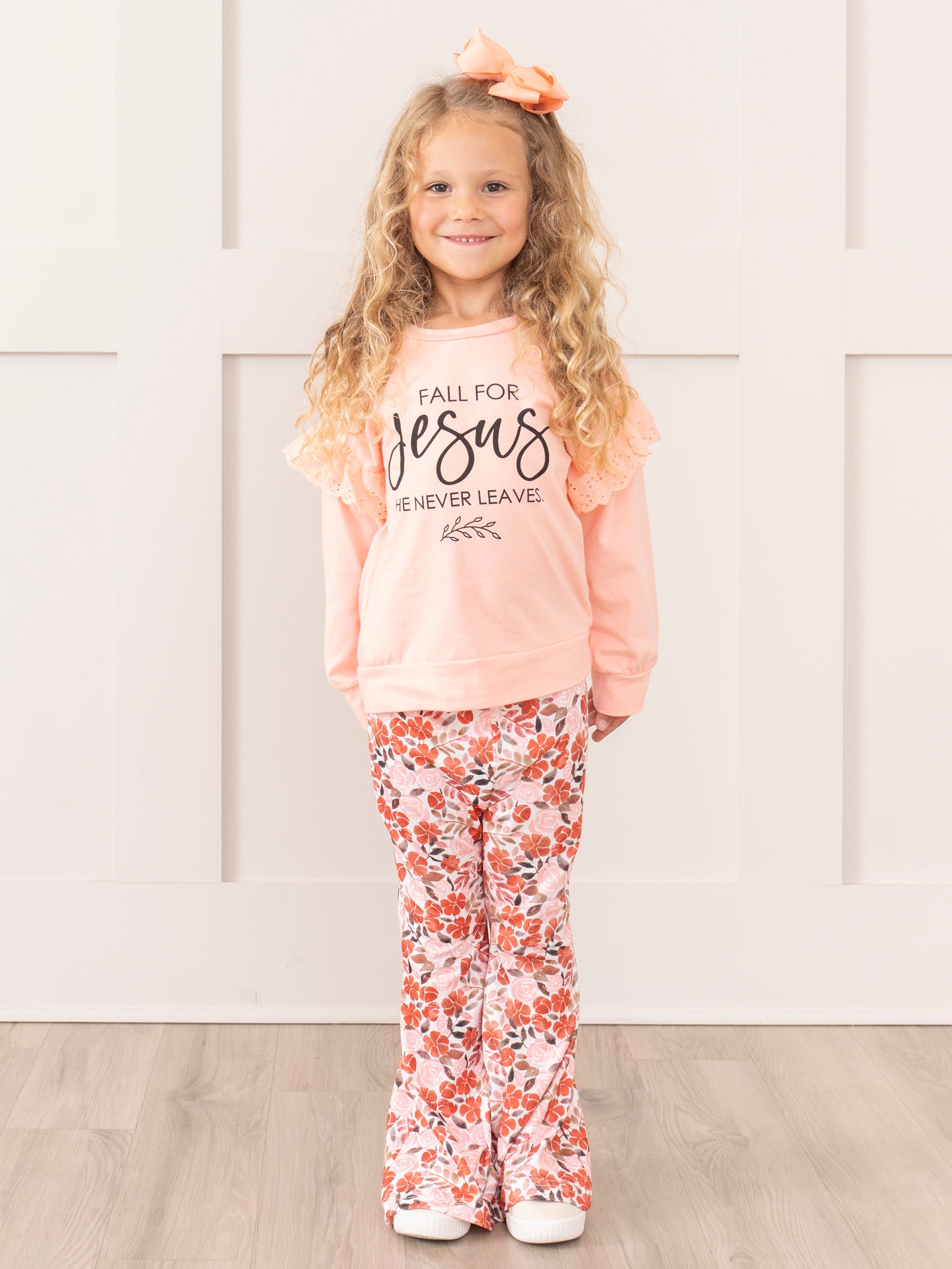 Pink Floral "Jesus Never Leaves" Bell Bottom Outfit