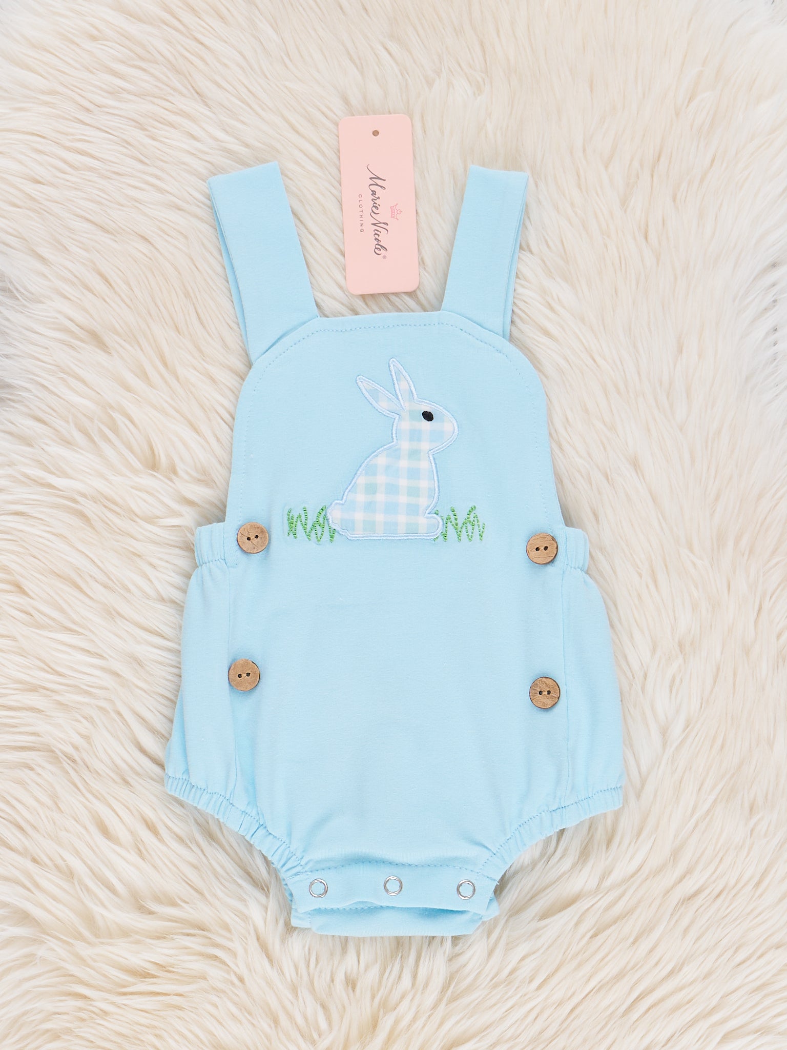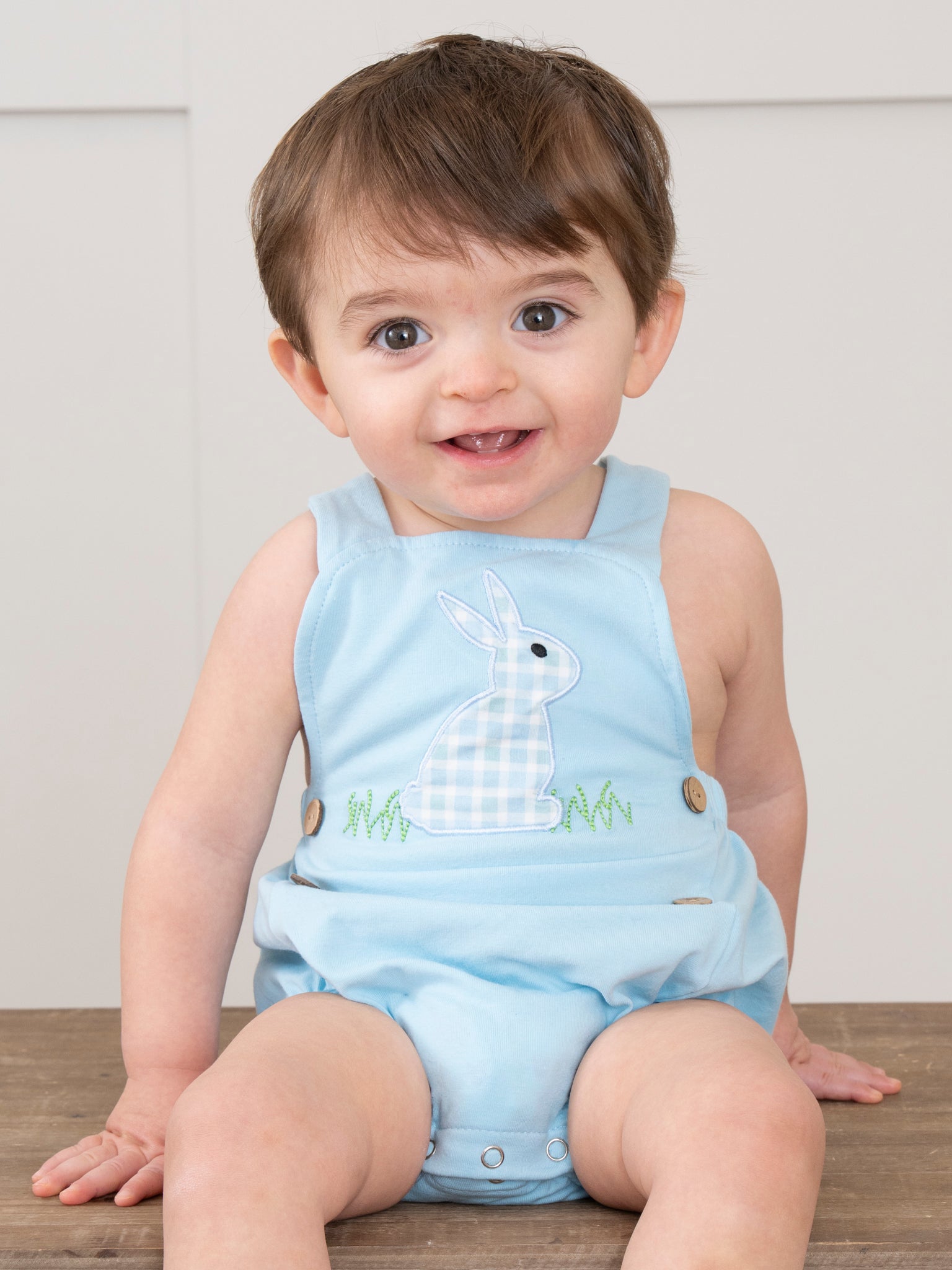 Hop into spring with our Plaid Embroidered Bunny Bubble! Made from soft blue fabric, this boys bubble is perfect for Easter celebrations. With button details, adjustable straps, and an embroidered plaid bunny, your little one will be dressed to impress. Don't forget to check out our brother set option from Marie Nicole Clothing!