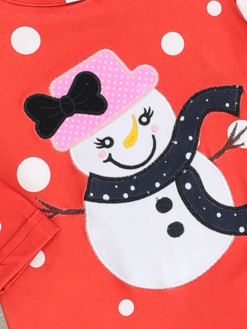 Red Polka Dot Snowman Ruffle Romper