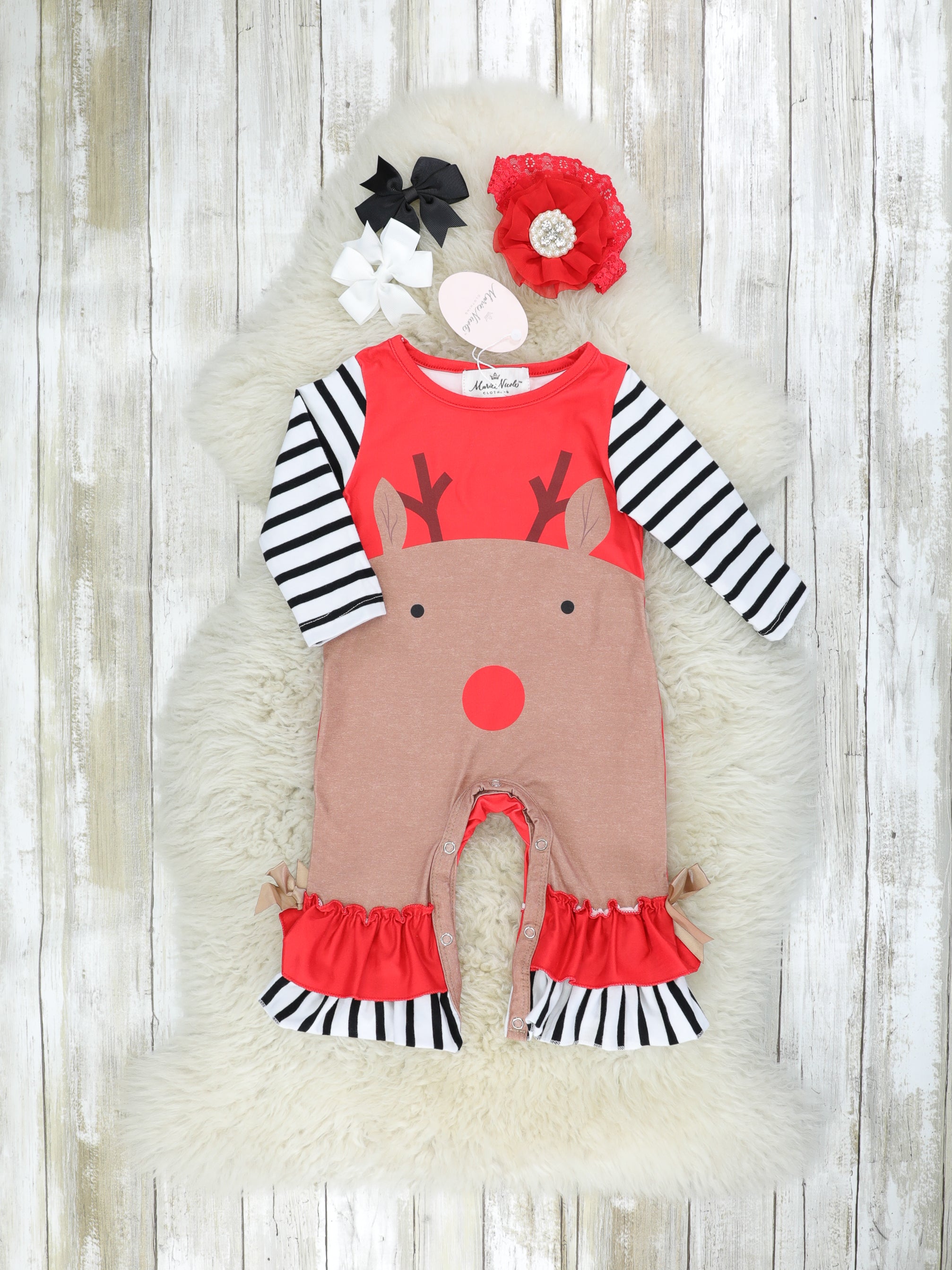 Red Striped Reindeer Ruffle Romper