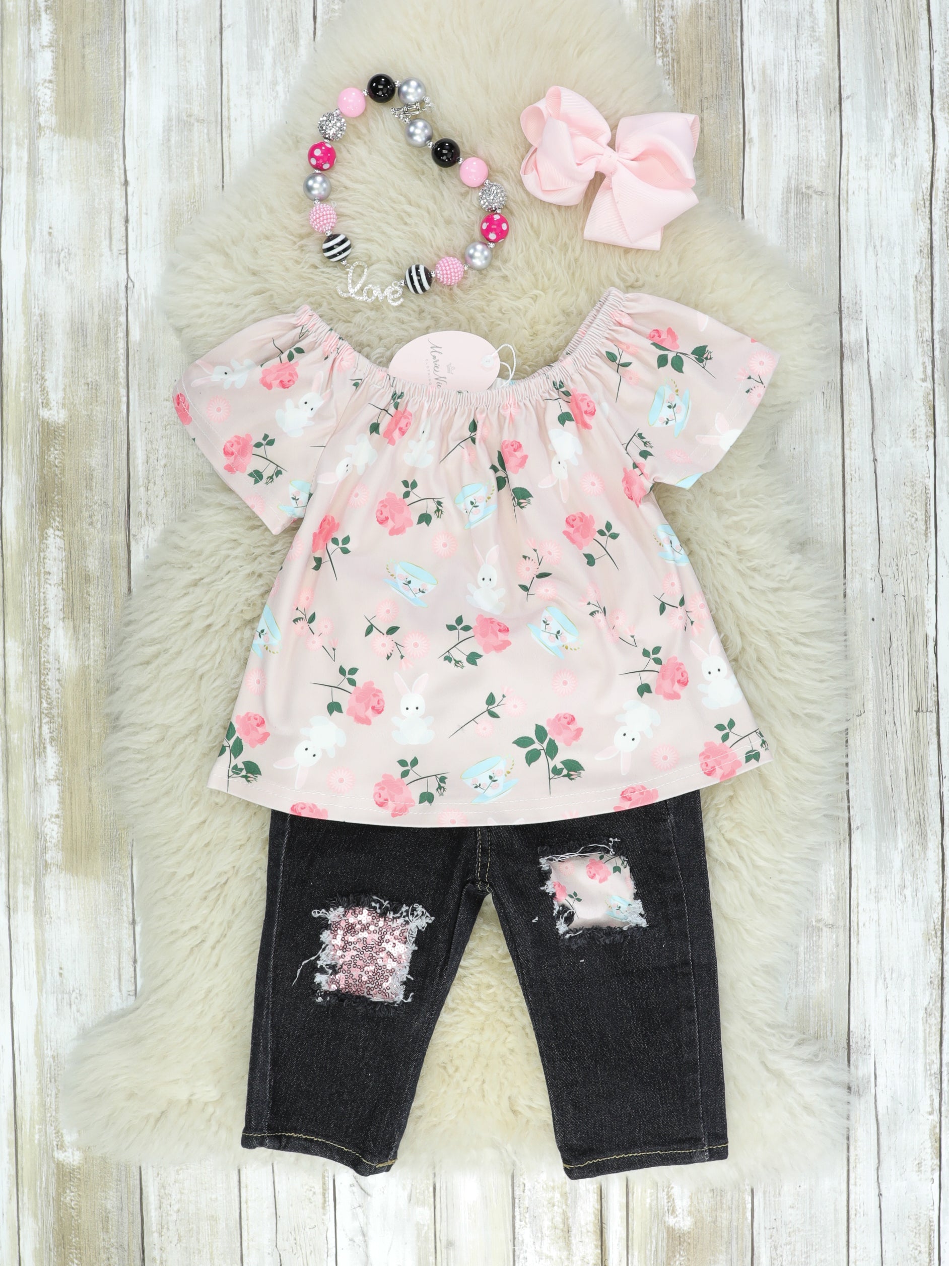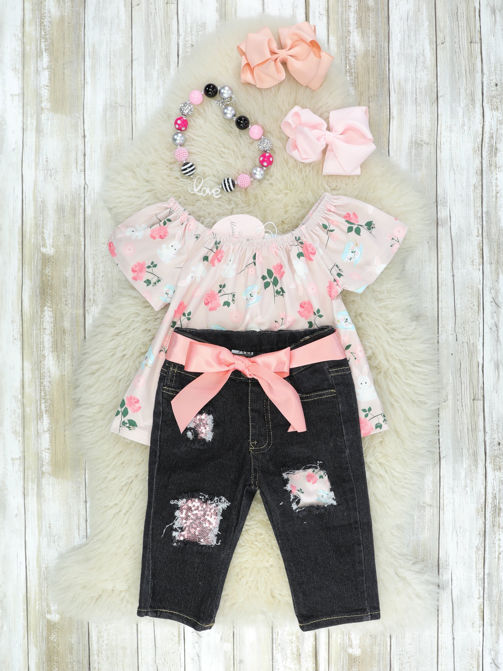 Bunny Soft Pink Floral Denim Outfit