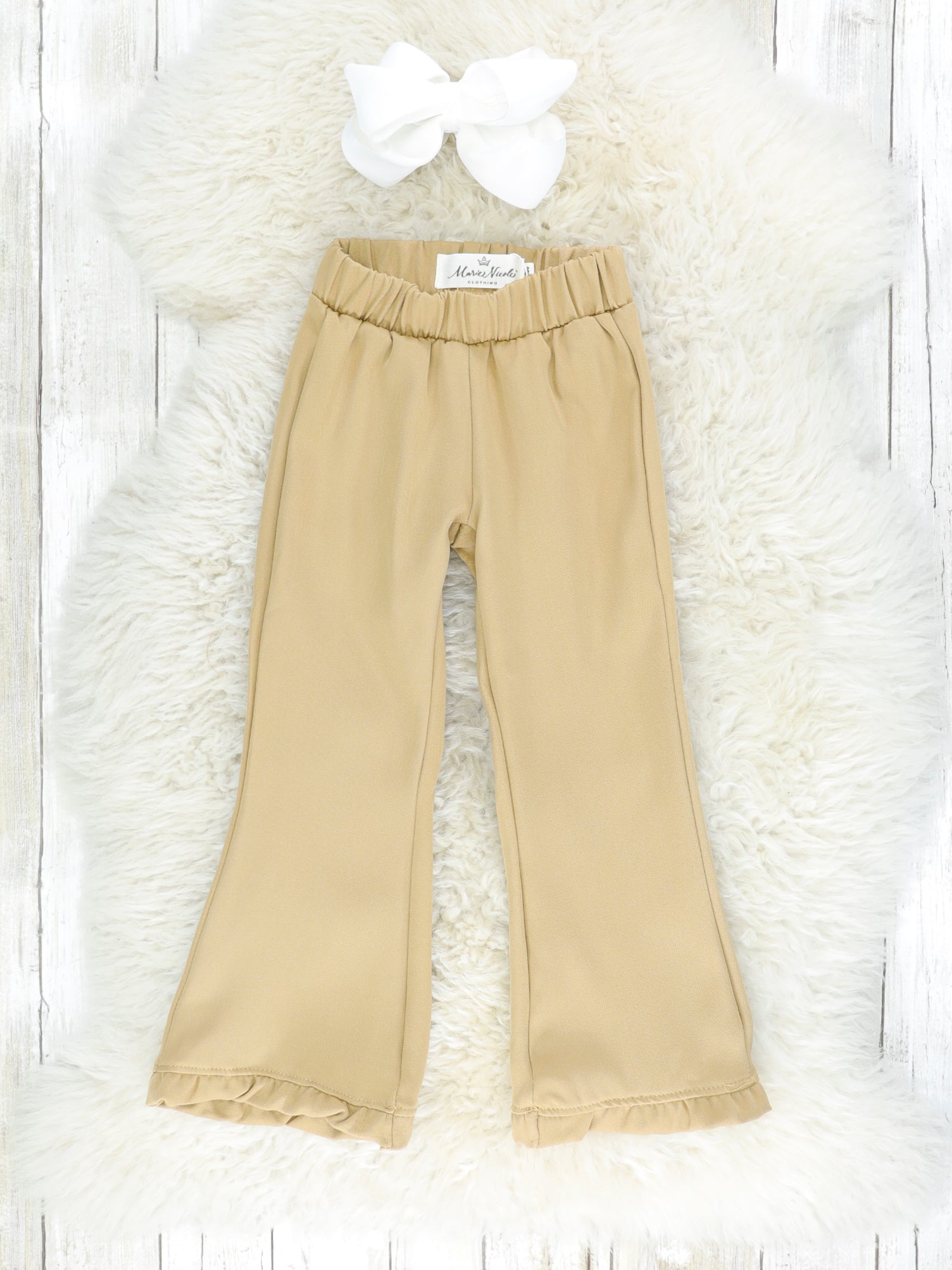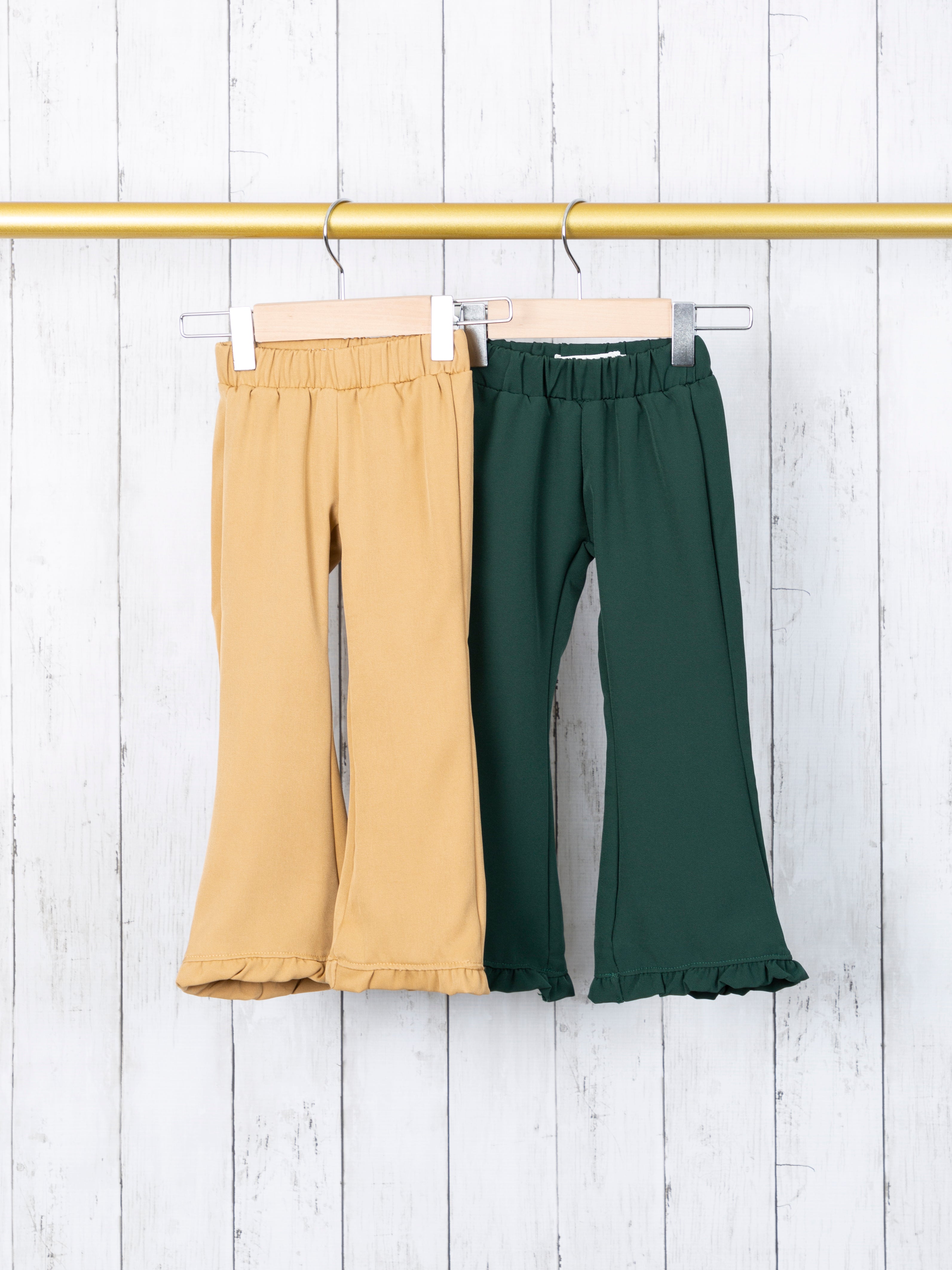 Enter fall in style in these adorable bell bottoms! These feature ruffle trim at the feet & an elastic waistband so they grow with your little! Also available in Forest Green- shop here.