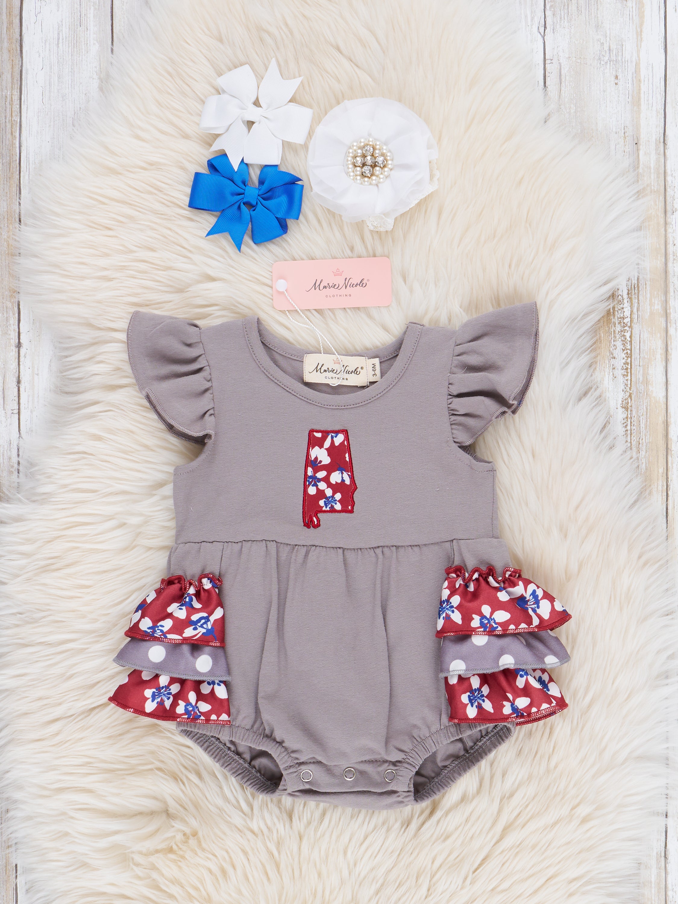 Score an instant win with the 2024 AL Crimson Sibling Set! Perfect for game-day fun or just a morning playdate, this bubble is sure to help the 'Bama fans in your fam show off their state pride with delightful Alabama Crimson floral ruffles and embroidered state design.