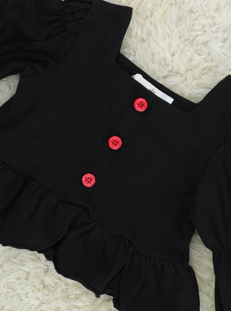 Black Puff Sleeve Top & Santa Bell Bottoms Outfit