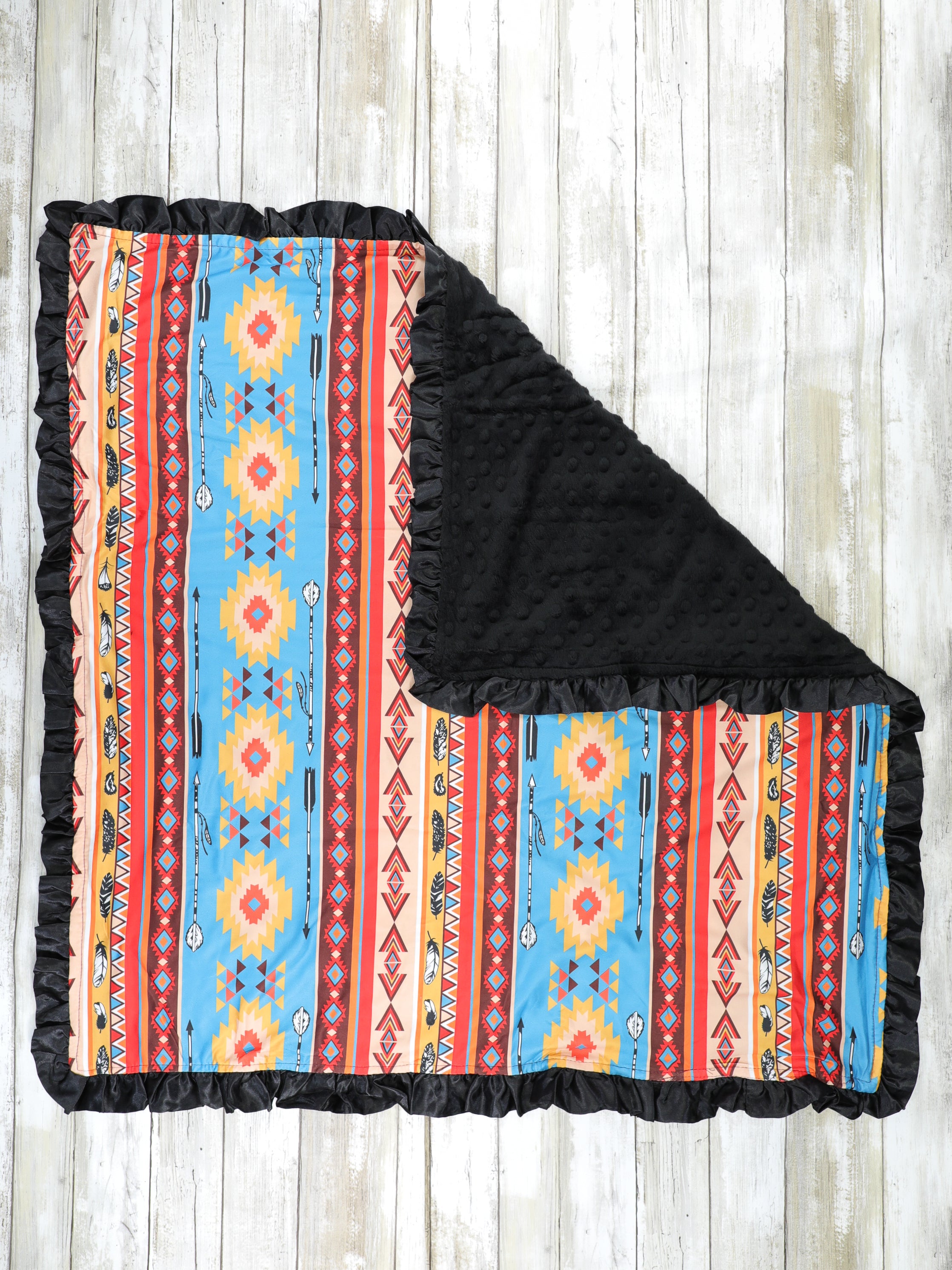 Blue & Red Western Minky Ruffle Blanket