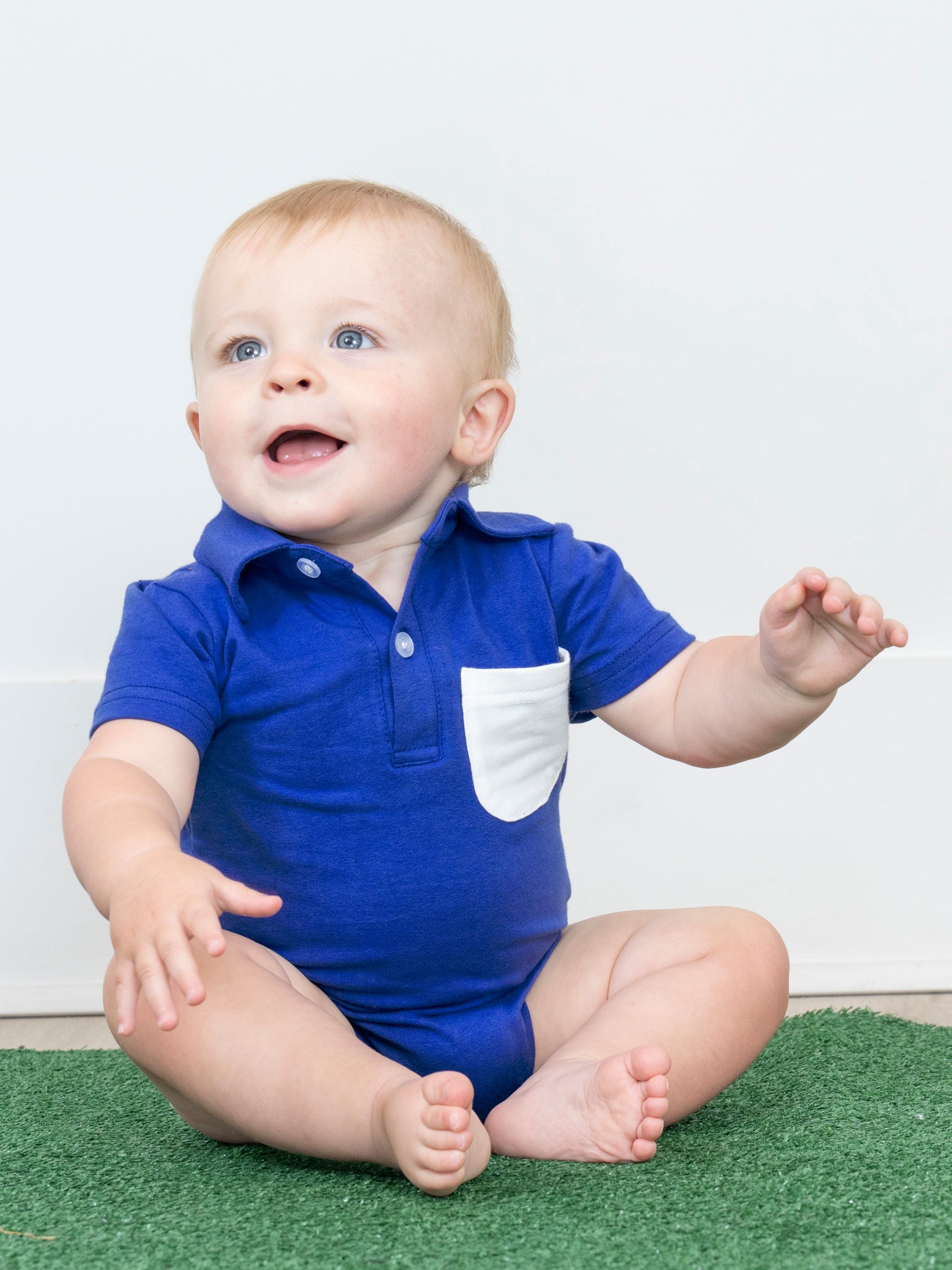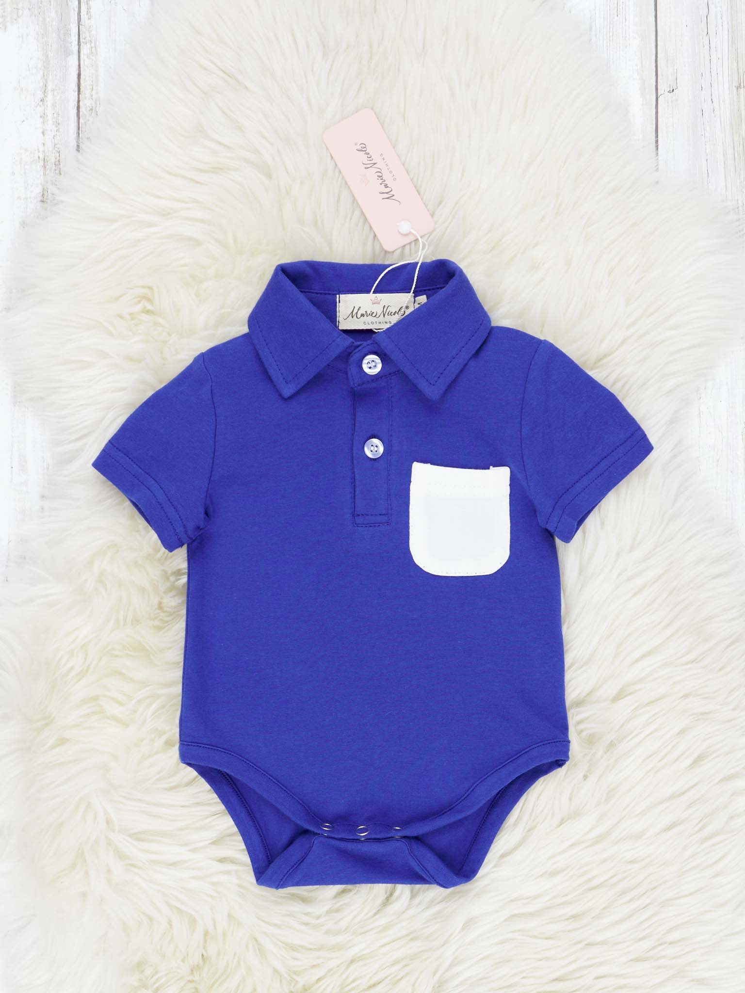 Stay stylish with this family-friendly collegiate set! This Blue & White Polo Romper comes in a fresh pocket design and is perfect for any family outing. Get your matching set now and show your sports-themed pride!