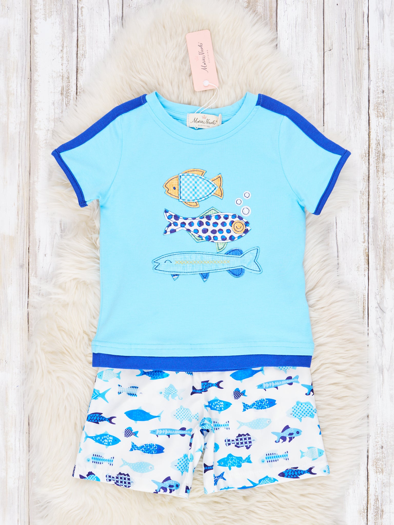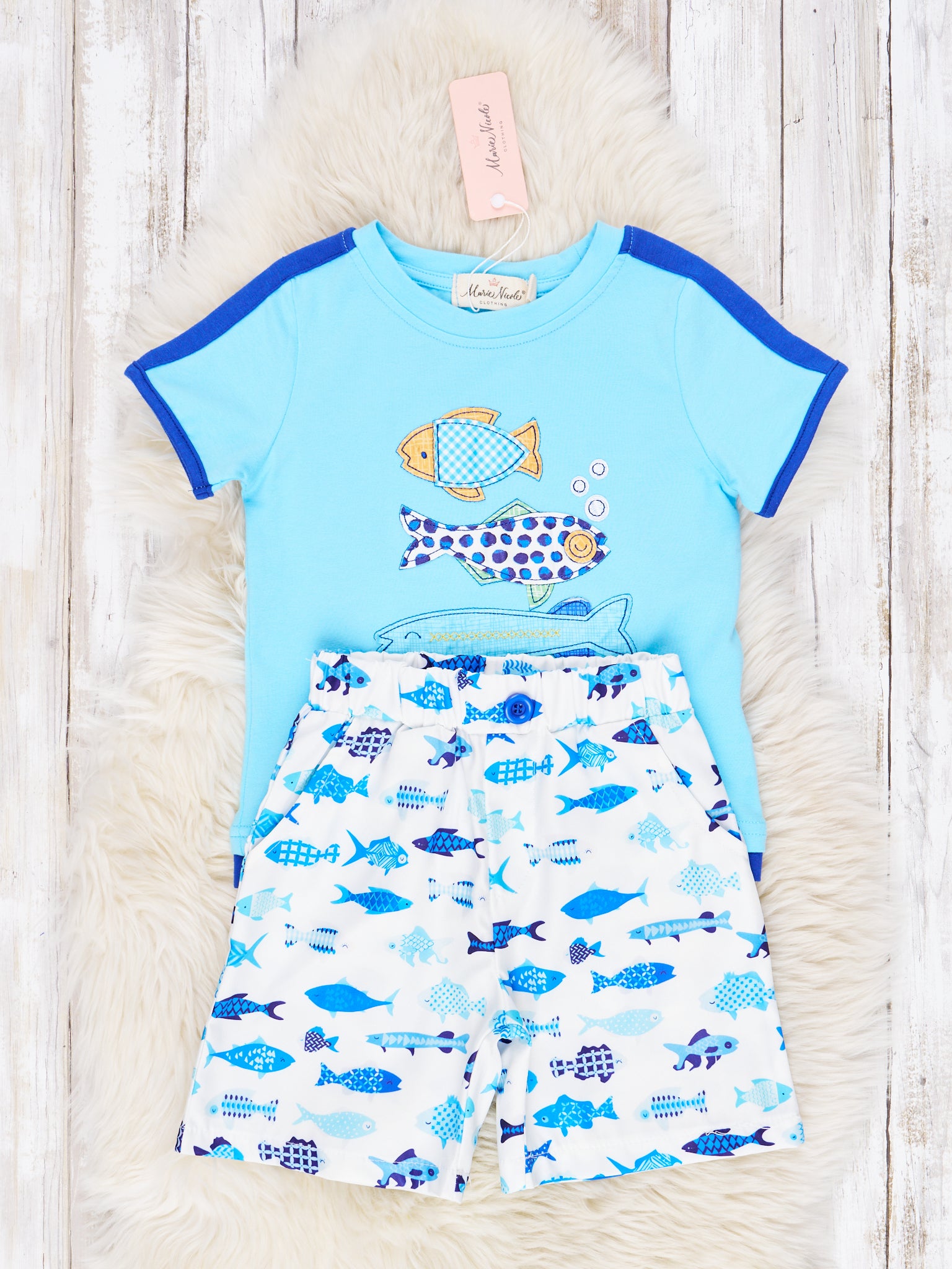 Dress your duo up for a day of fin-tastic fun in this Blue Fishes Brother Set! From the light blue hue to the adorable appliqués, these brotherly looks will have them looking FISHionable in no time. Plus, with dark blue trim and an elastic waistband on the shorts, comfort won't be a problem!