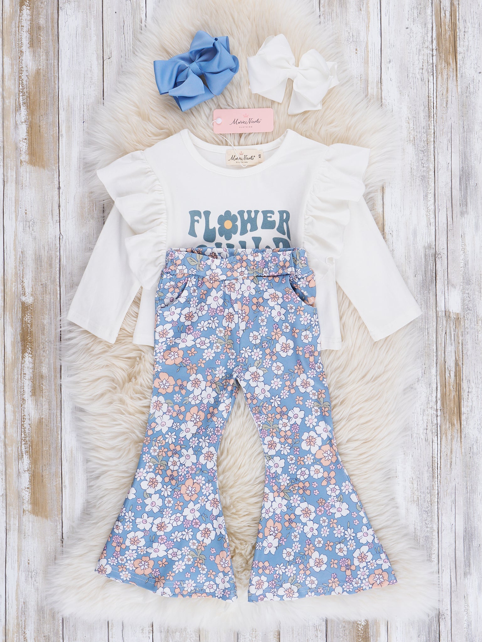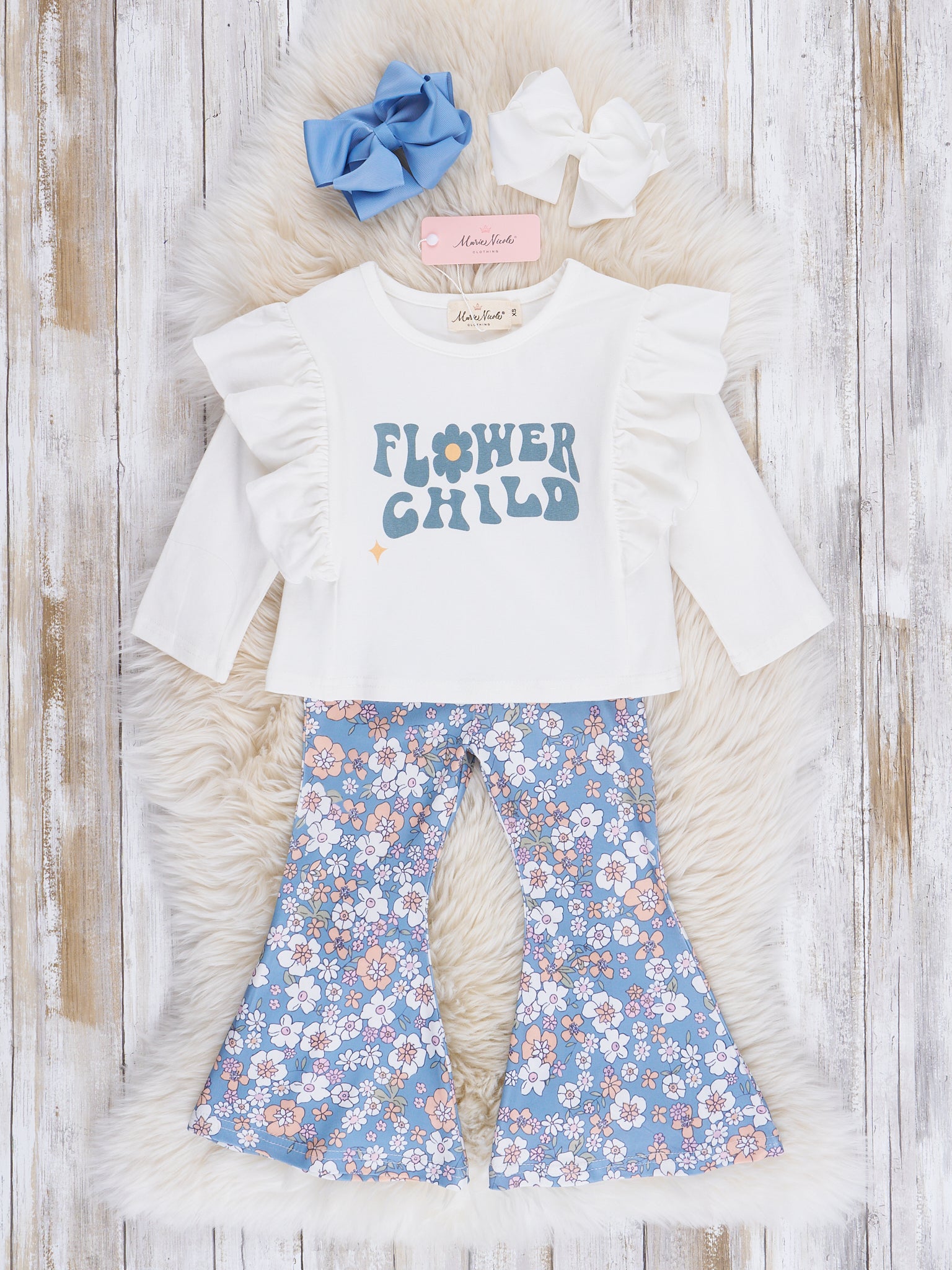 Blue Flower Child Bell Bottoms Outfit