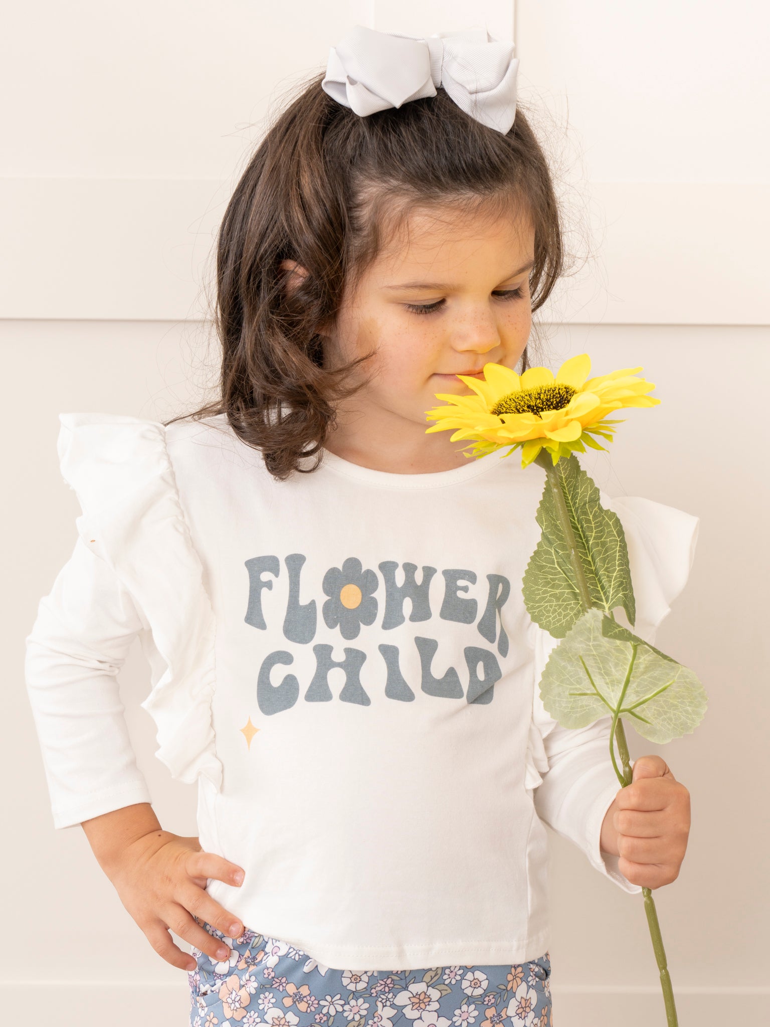 Get ready for a groovy time with our Blue Flower Child Bell Bottoms Outfit! This girls ensemble features floral bell bottoms and a vibrant flower child design, perfect for fall. Get your little ones set for a stylish season with this sister set!