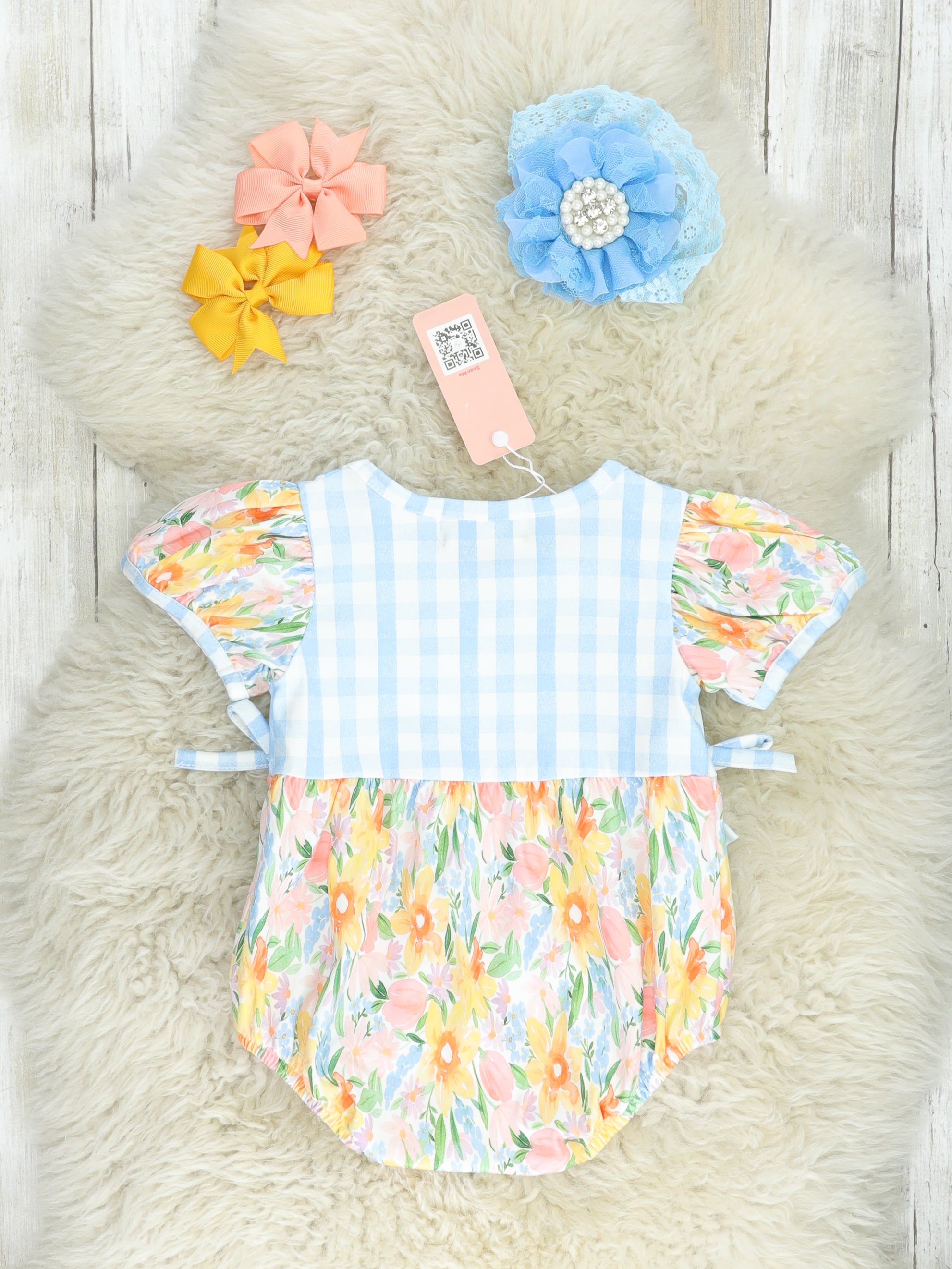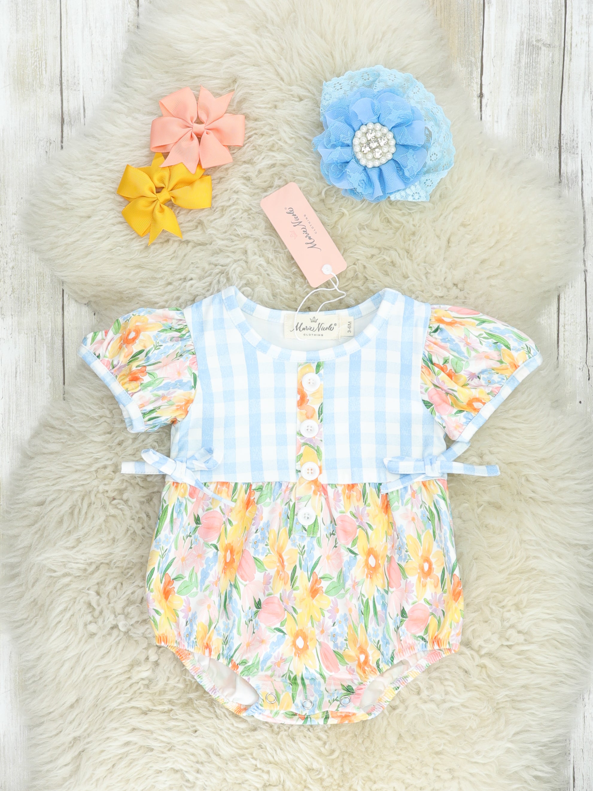 Blue Gingham & Yellow Floral Ruffle Bubble