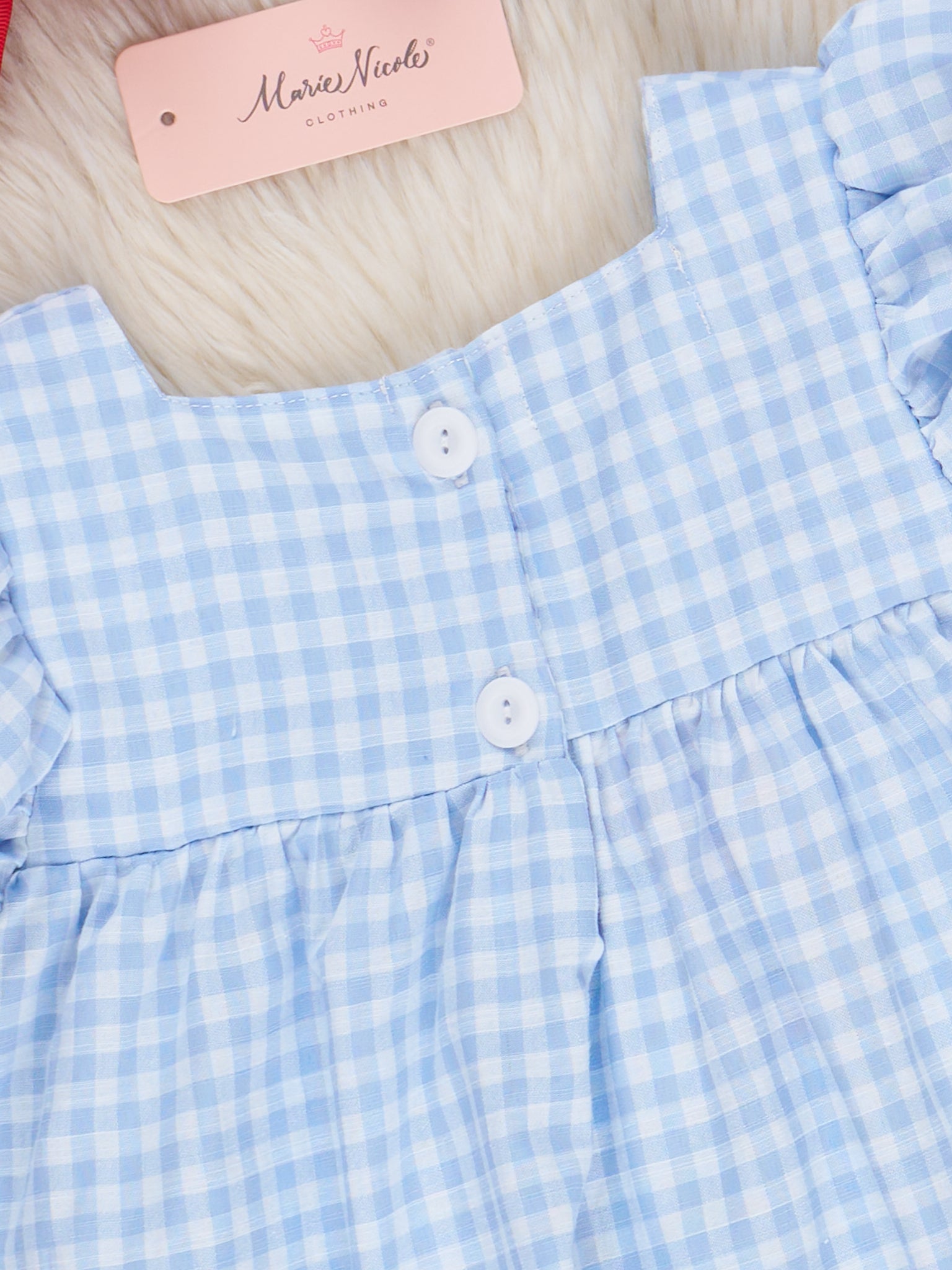 Blue Gingham Embroidered Crayons Ruffle Dress