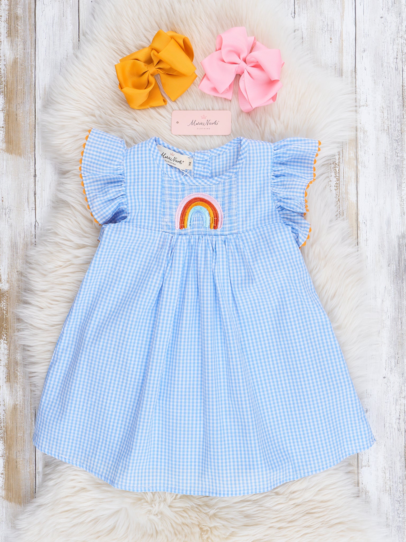 Blue Gingham Rainbow Ruffle Dress