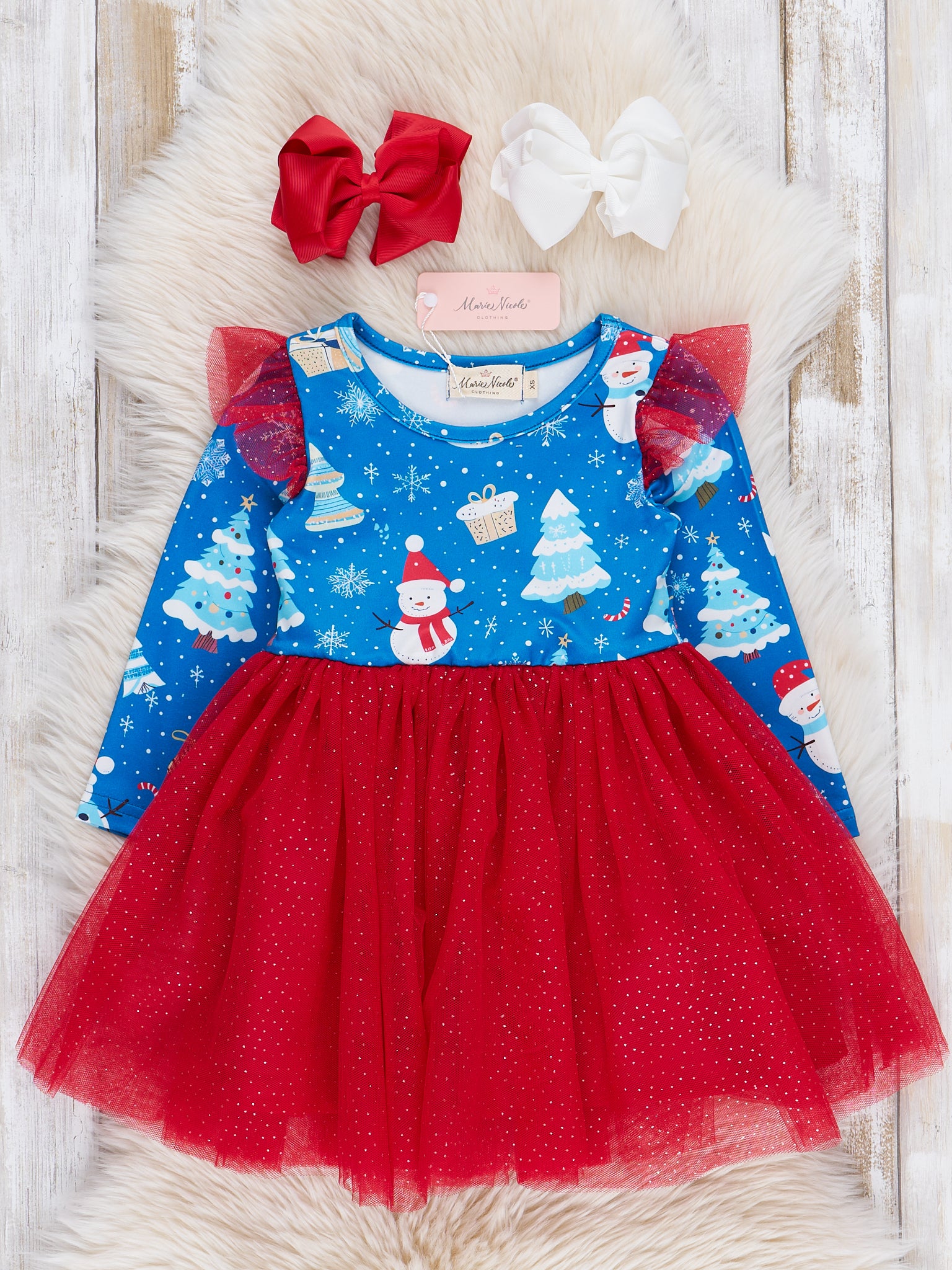Blue & Red Snowy Christmas Tulle Dress