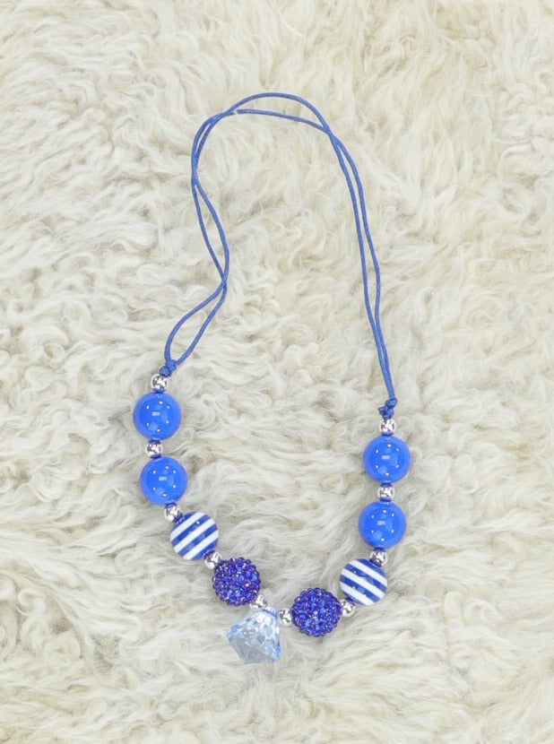 Blue Striped Diamond Adjustable Bubblegum Necklace