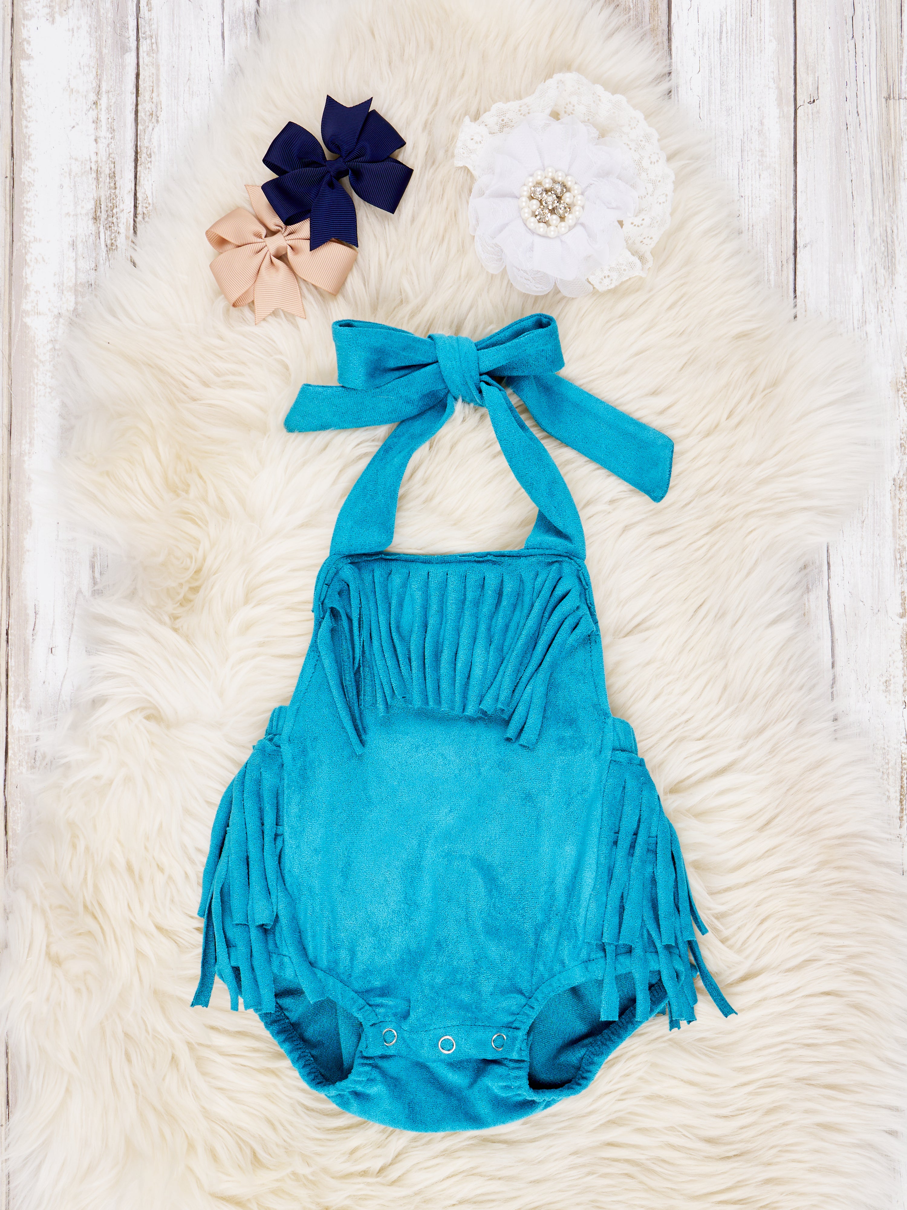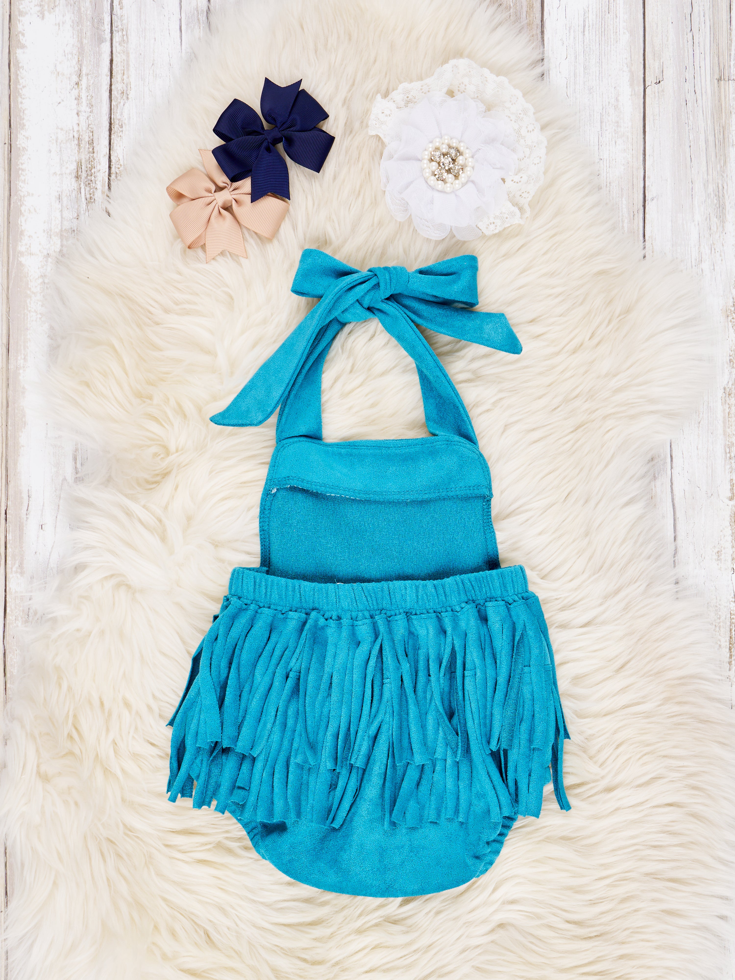 Let your kids strut their stuff in this super-cool Blue Suede Fringe Tie Romper! Stylish and edgy, it has all the fringe benefits with its tier straps and suede details.