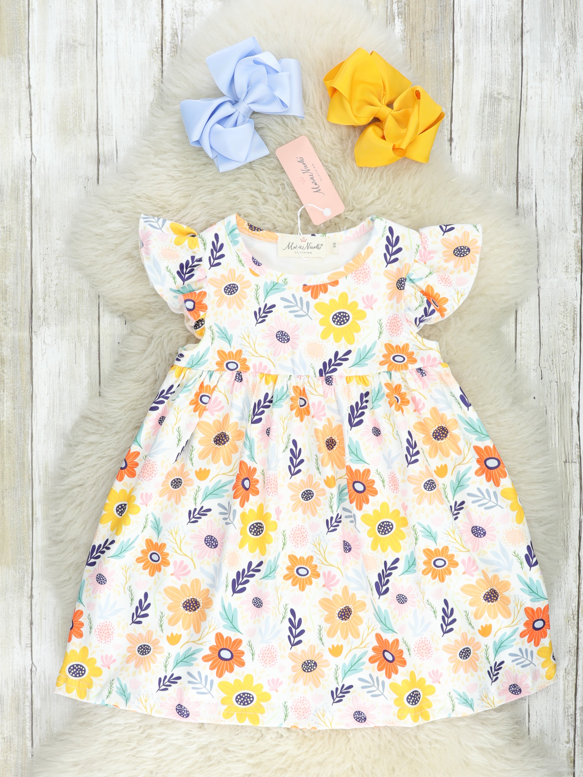 Your little one will be fluttering away in style with this Bold Floral Flutter Sleeve Dress! Eye-catching florals make a bold statement, while comfy flutter sleeves will have them feeling like a flower fairy all day long. Get ready for a summer of twirls and whimsical fun!
