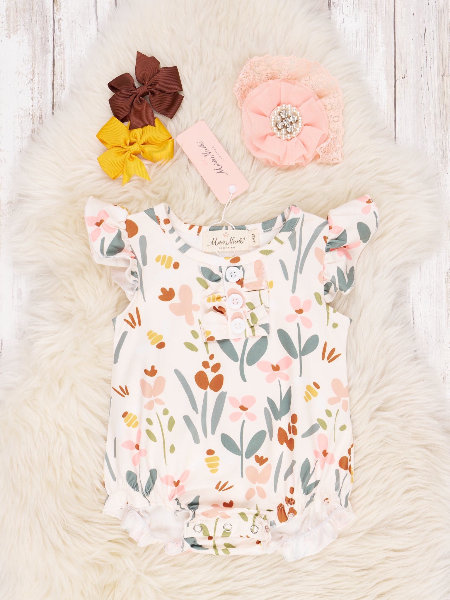 Hearts will flutter with delight when your little girls put on this sister set! This romper has beautiful florals and ruffles for a look that’s as sweet as it is stylish. Perfect for spring and summer days!