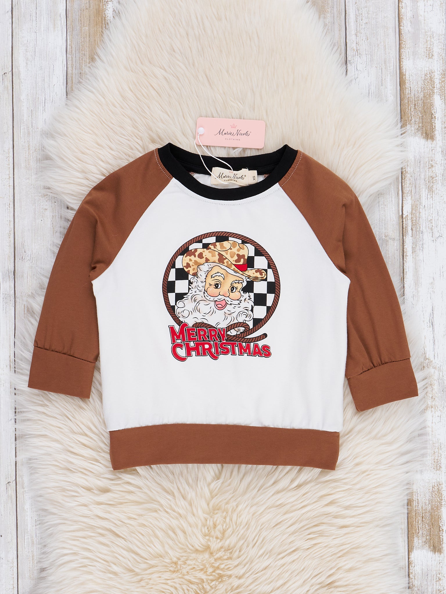 Get your little one the perfect holiday outfit with our Brown "Merry Christmas" Raglan Shirt! This boys romper features playful brown raglan sleeves and a jolly Santa design, making it the ideal addition to any brother set. Give your child the gift of style and comfort this Christmas!
