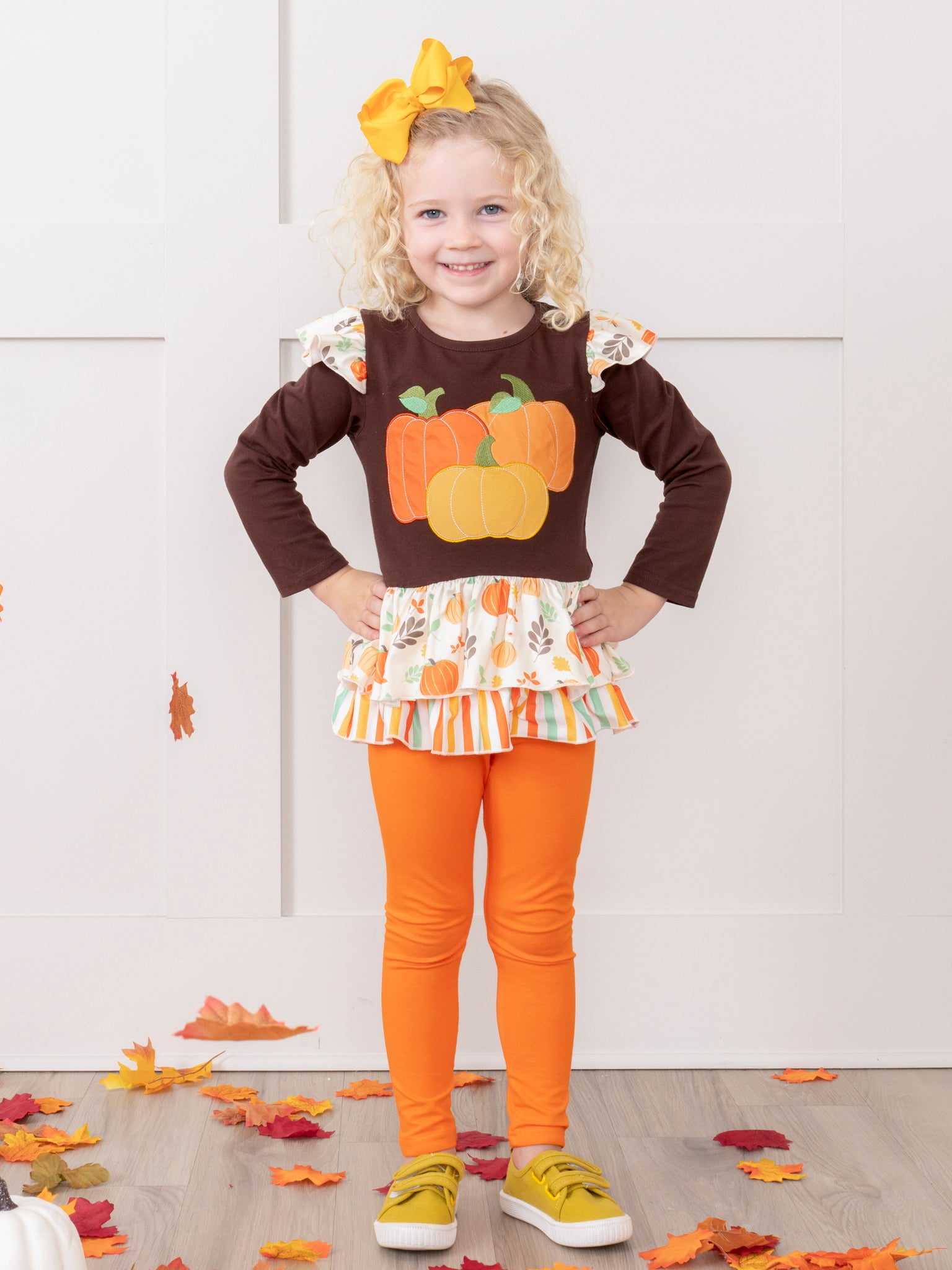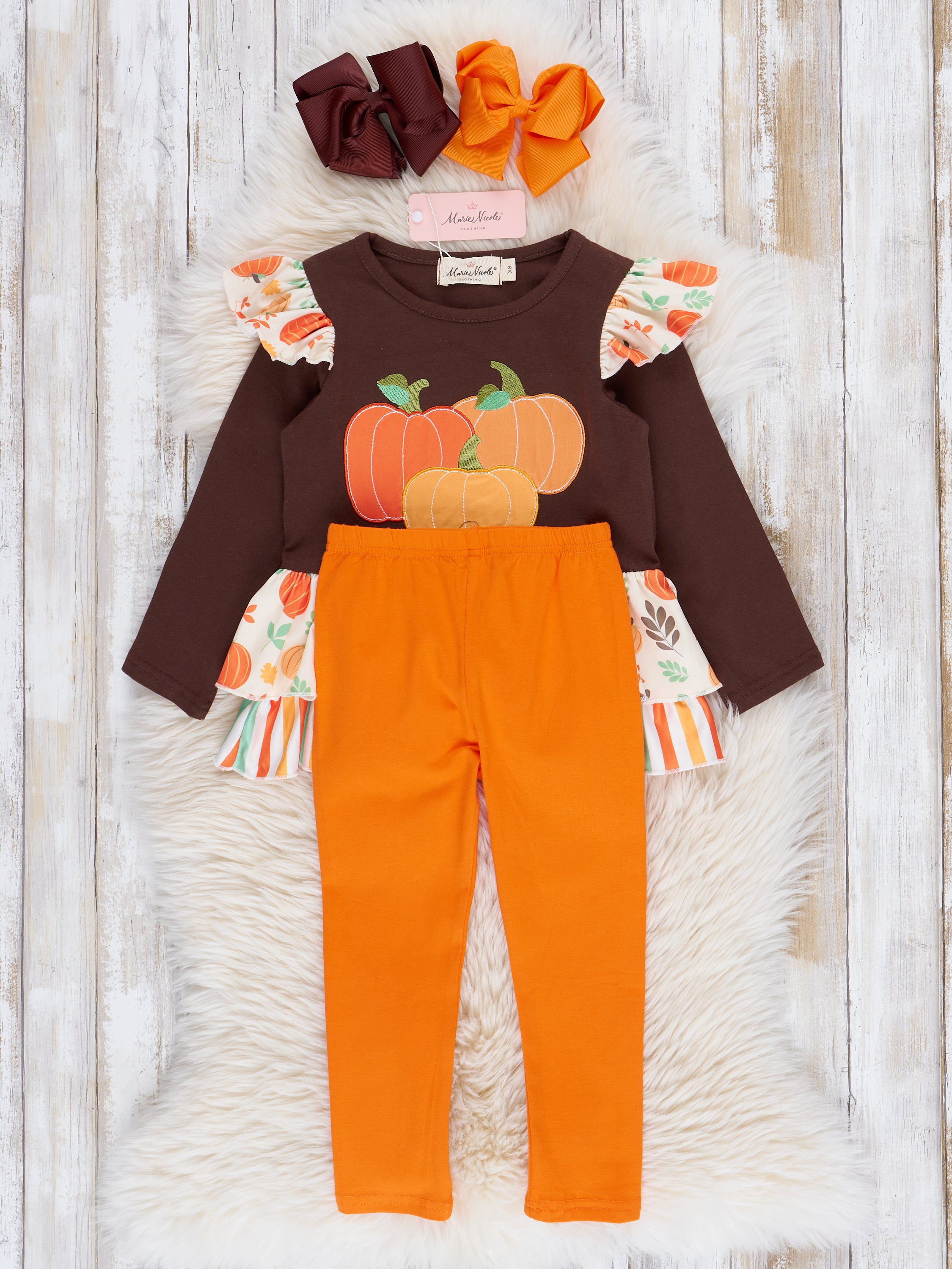 Brown & Orange Pumpkin Harvest Ruffle Outfit