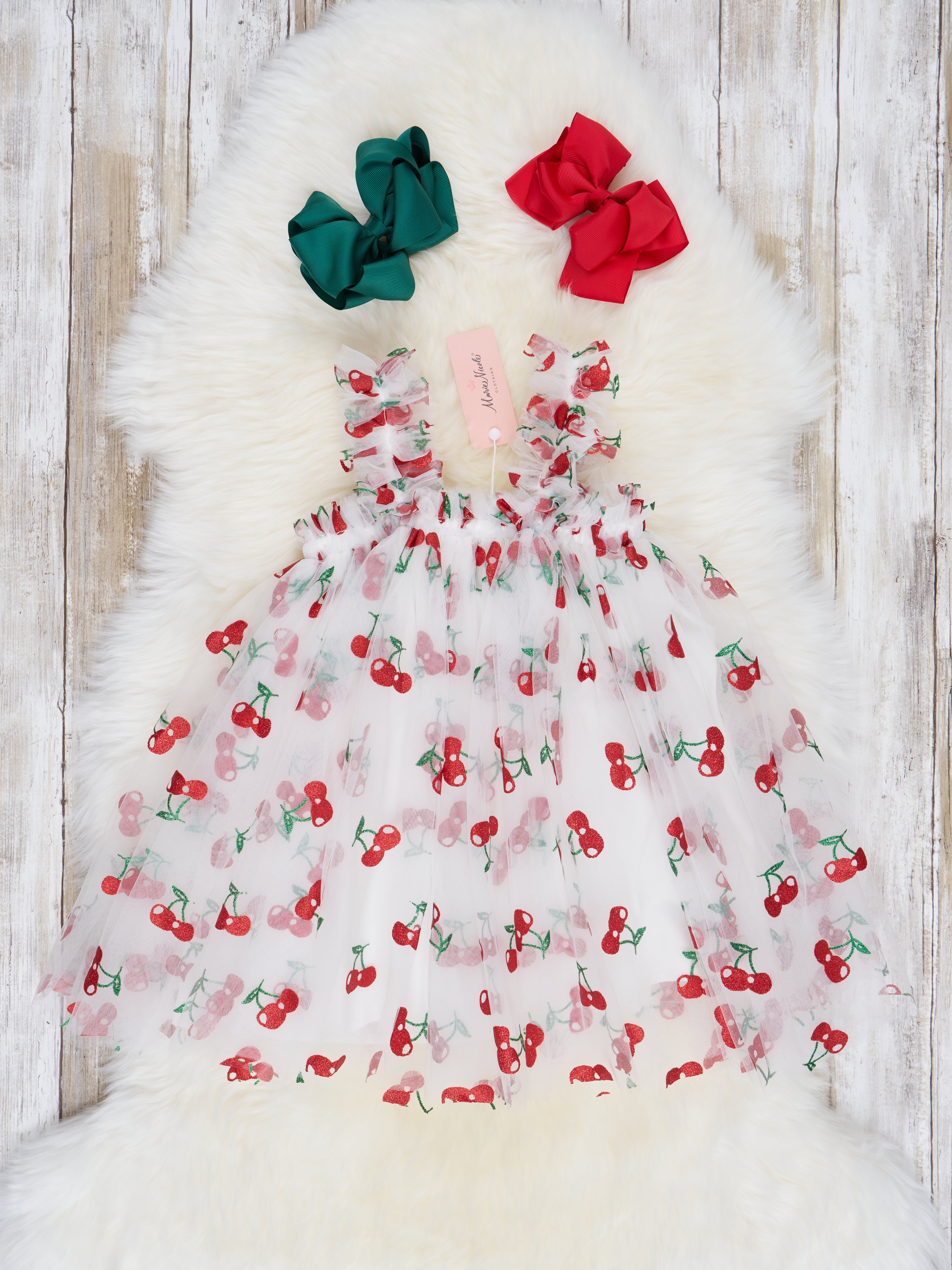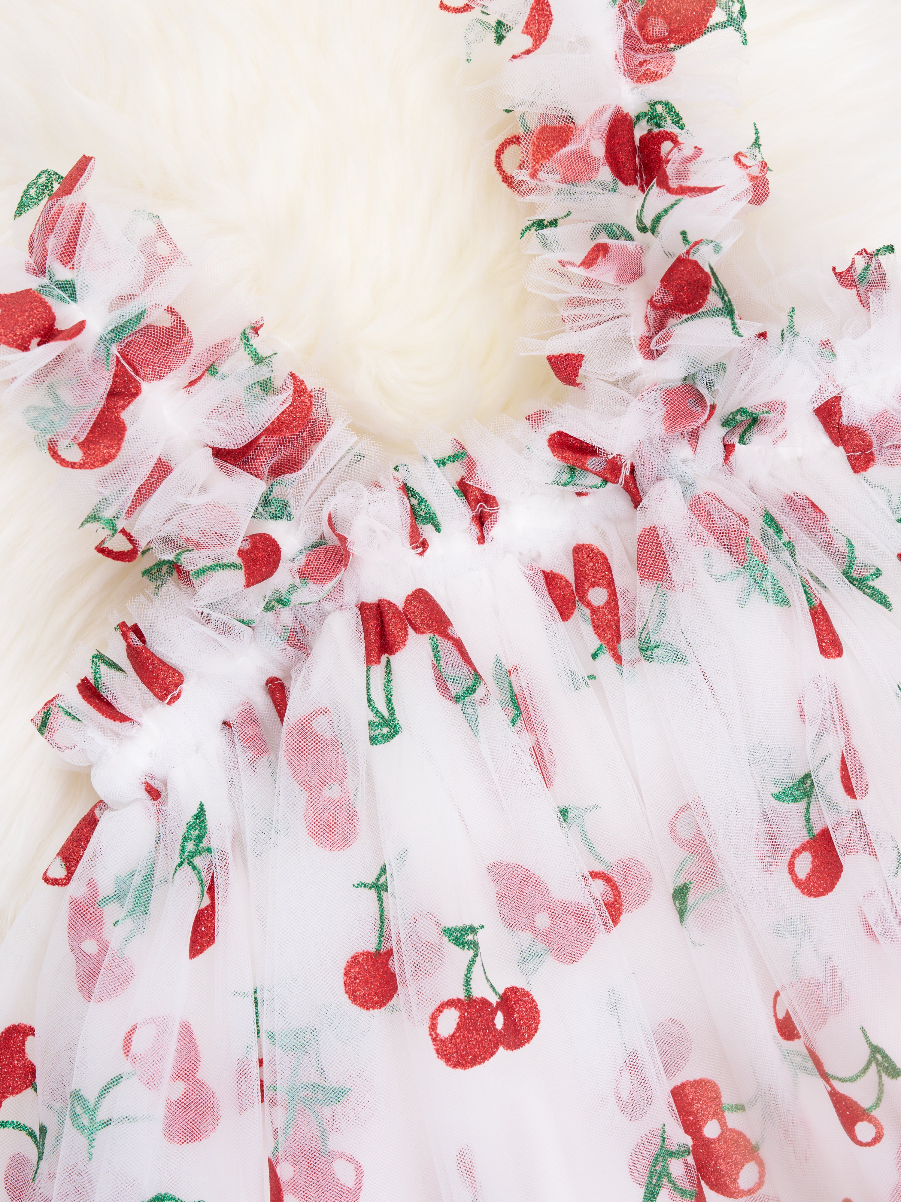 Let your child twirl in the sweetest style with this Cherry Tulle Tank Dress! Featuring a fully lined tulle fabric and cherry details, it's perfect for any special occasion. Let their inner princess shine!