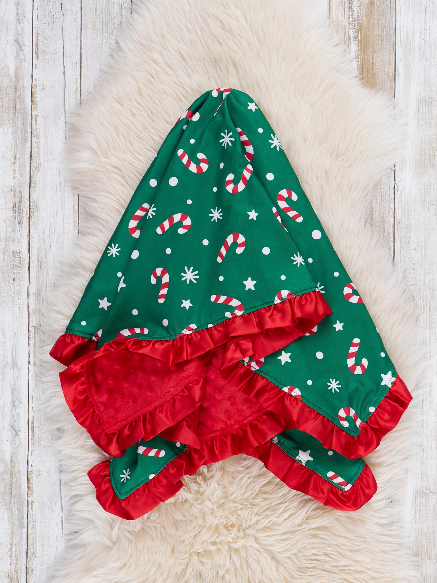Christmas Peppermint Party Ruffle Minky Blanket
