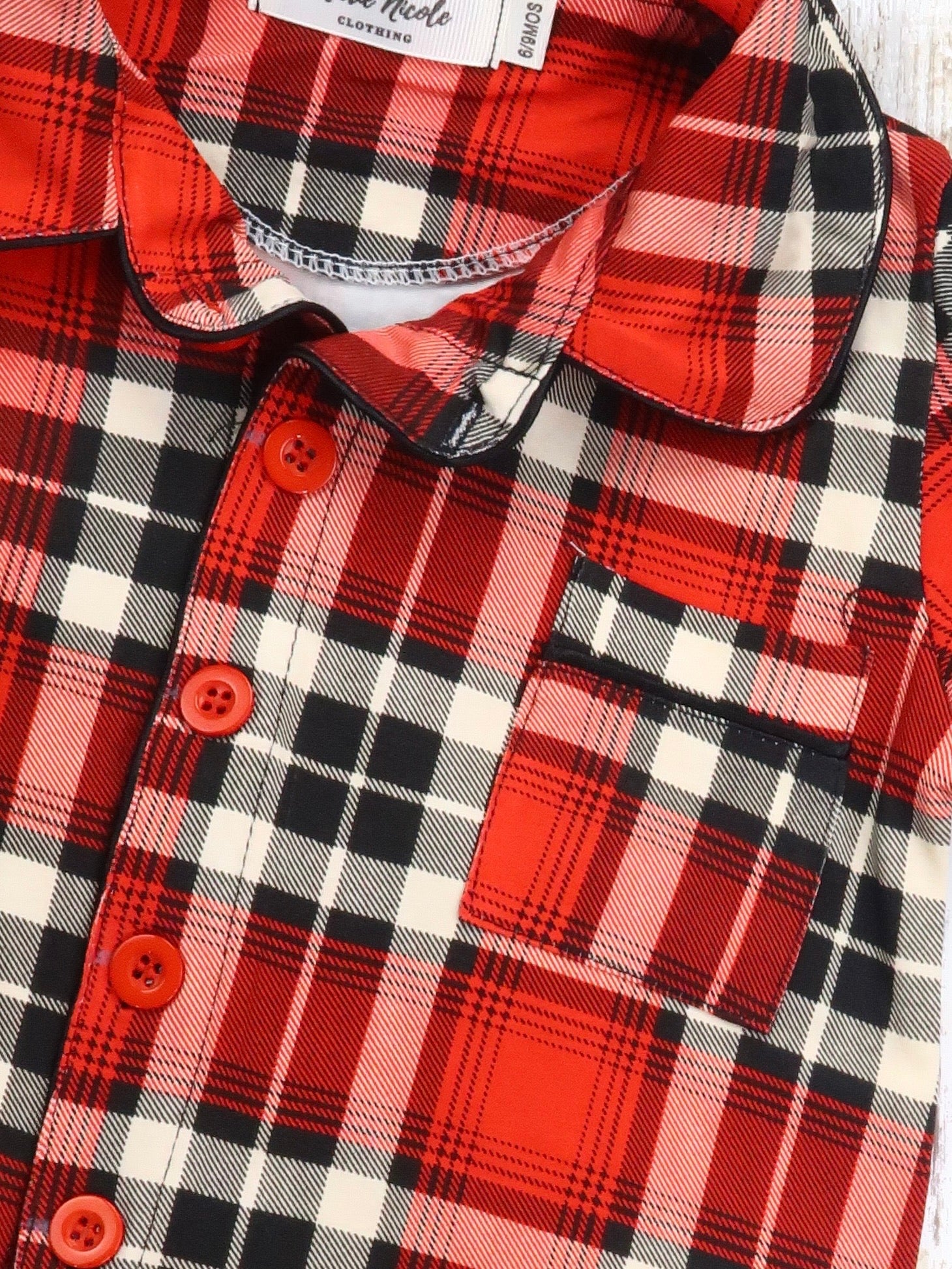 Cuddle up in classic red and black plaid with our Christmas Plaid Ruffle Button Pajamas! Perfect for Christmas morning, these comfortable pajamas feature lovely ruffles and functioning buttons for extra festive flair. Your girl will love cozying up in these stylish PJs!