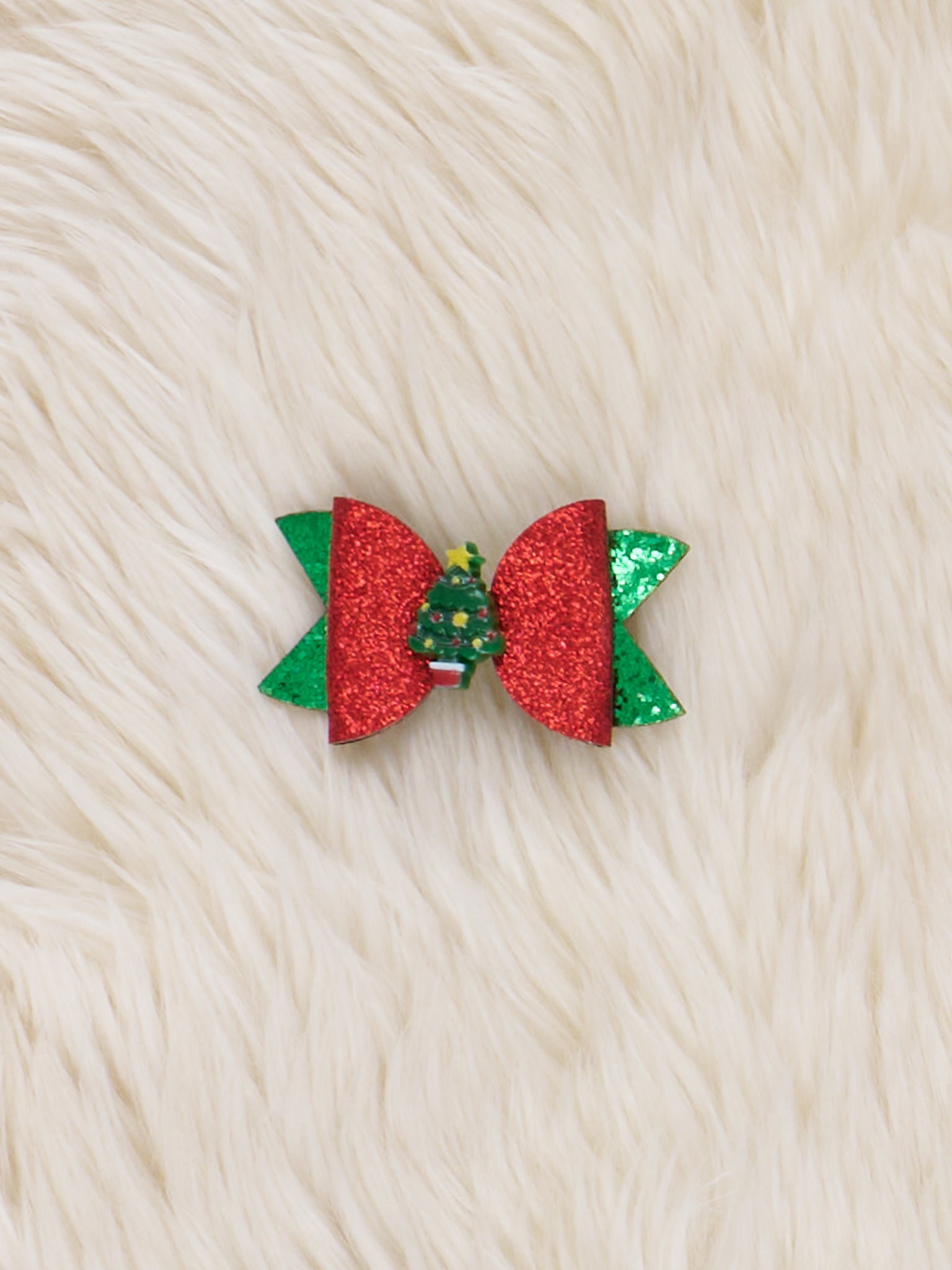 Be bright like a Christmas tree! Marie Nicole Clothing's Christmas Tree Glitter Bow is a bedazzling hairpiece that is perfect for the winter holiday season. Bring a piece of Christmas cuteness to any outfit with this adorable bow!